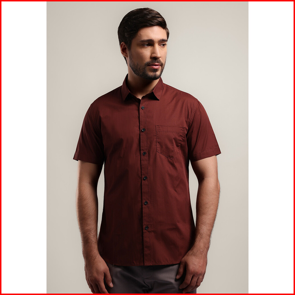 Moc Kemeja Lengan Pendek Pria Pedric-maroon