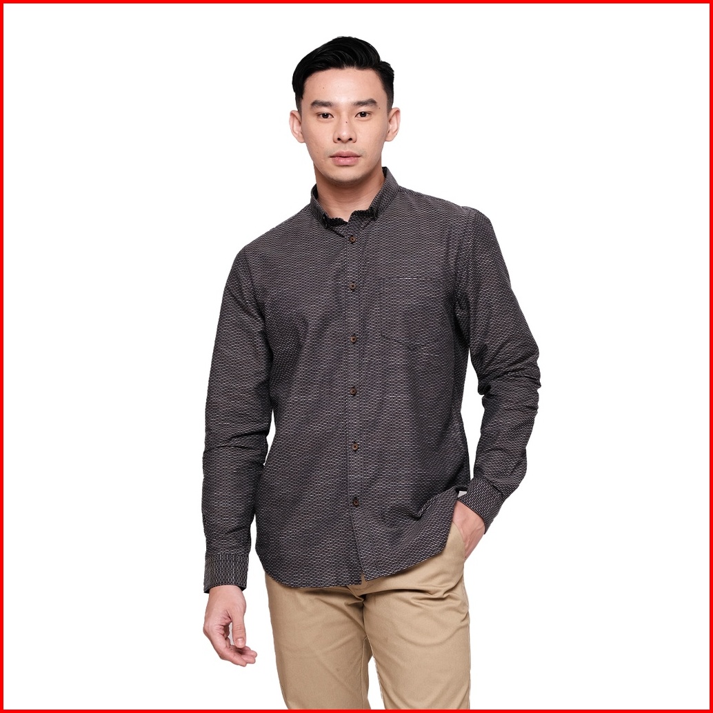 Moc Kemeja Lengan Panjang Pria Gloxi - Brown