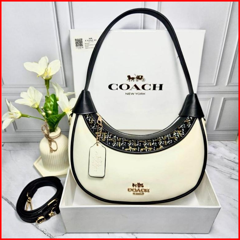 Free Box C0ach Tas Selempang Wanita Bailey Pattens Tweed Tas Bahu 1 Tali Mini Shoulder Bag Wanita Import