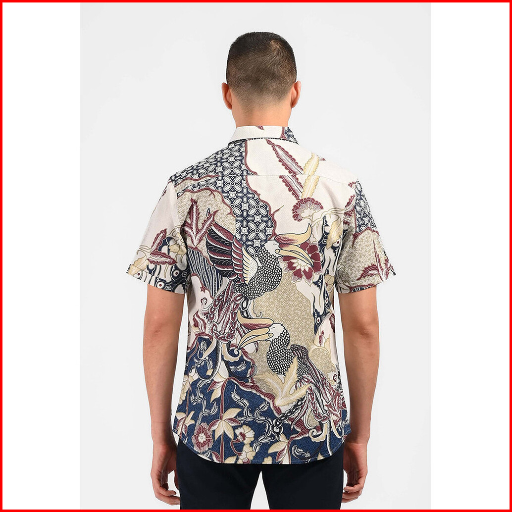 Moc Kemeja Batik Lengan Pendek Pria Tandav-navy