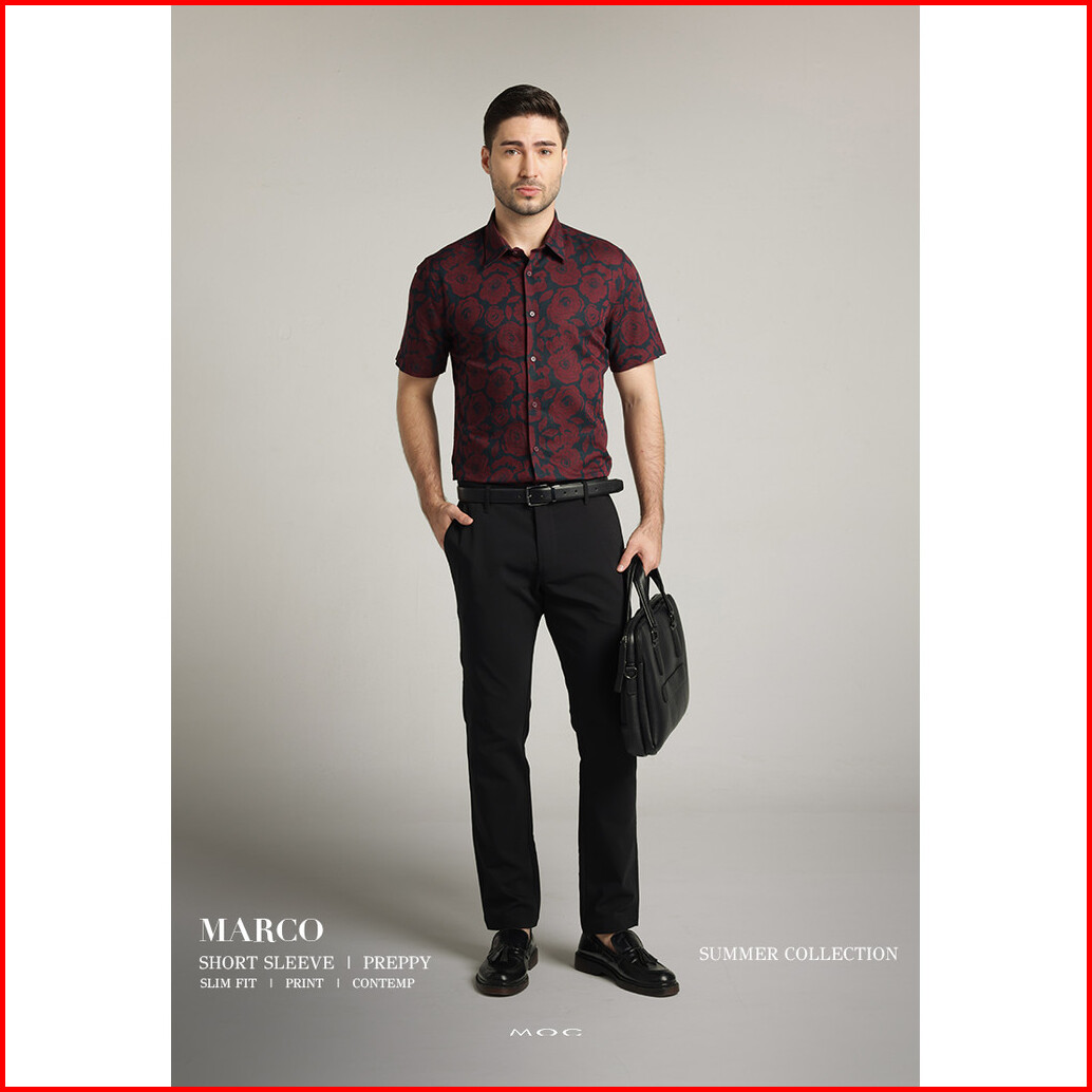 Moc - Kemeja Motif Pria Lengan Pendek Marco - Maroon