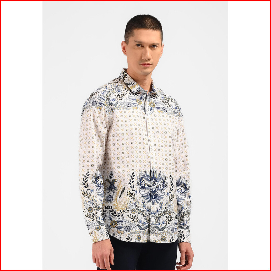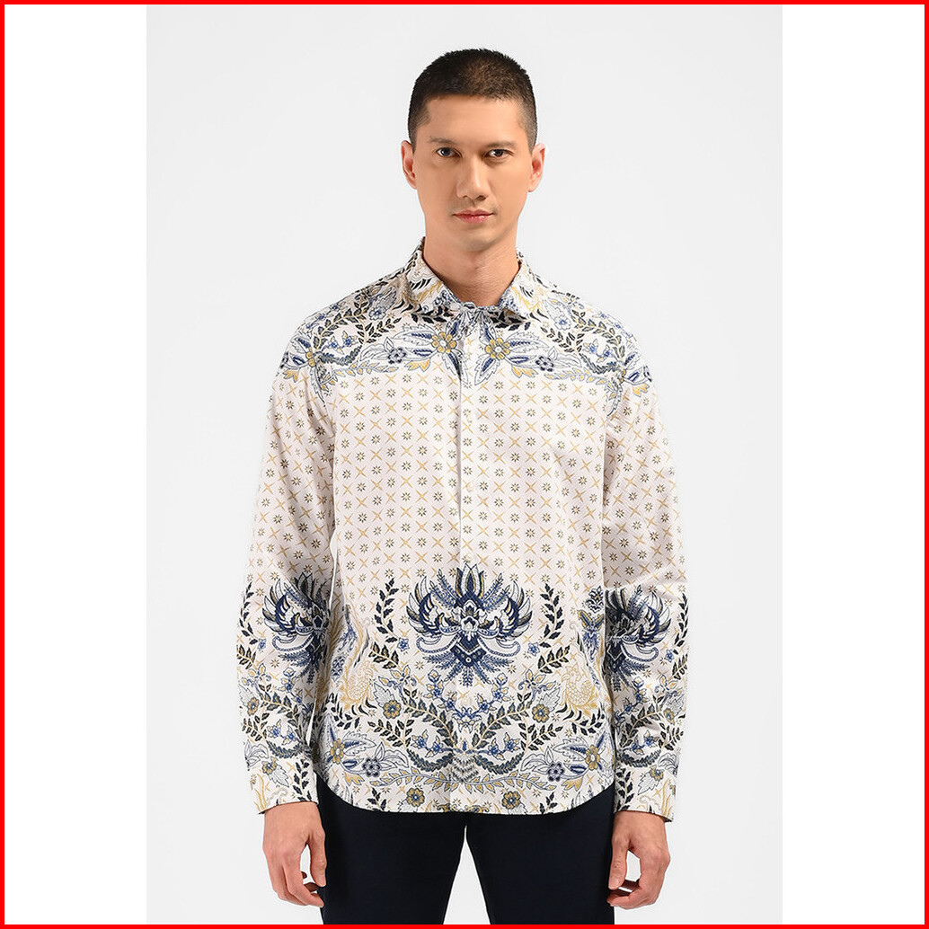 Moc Kemeja Batik Lengan Panjang Pria Shatkam-white