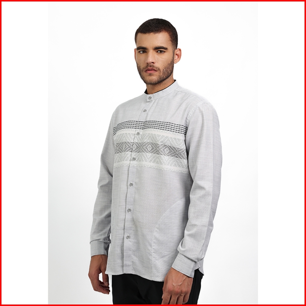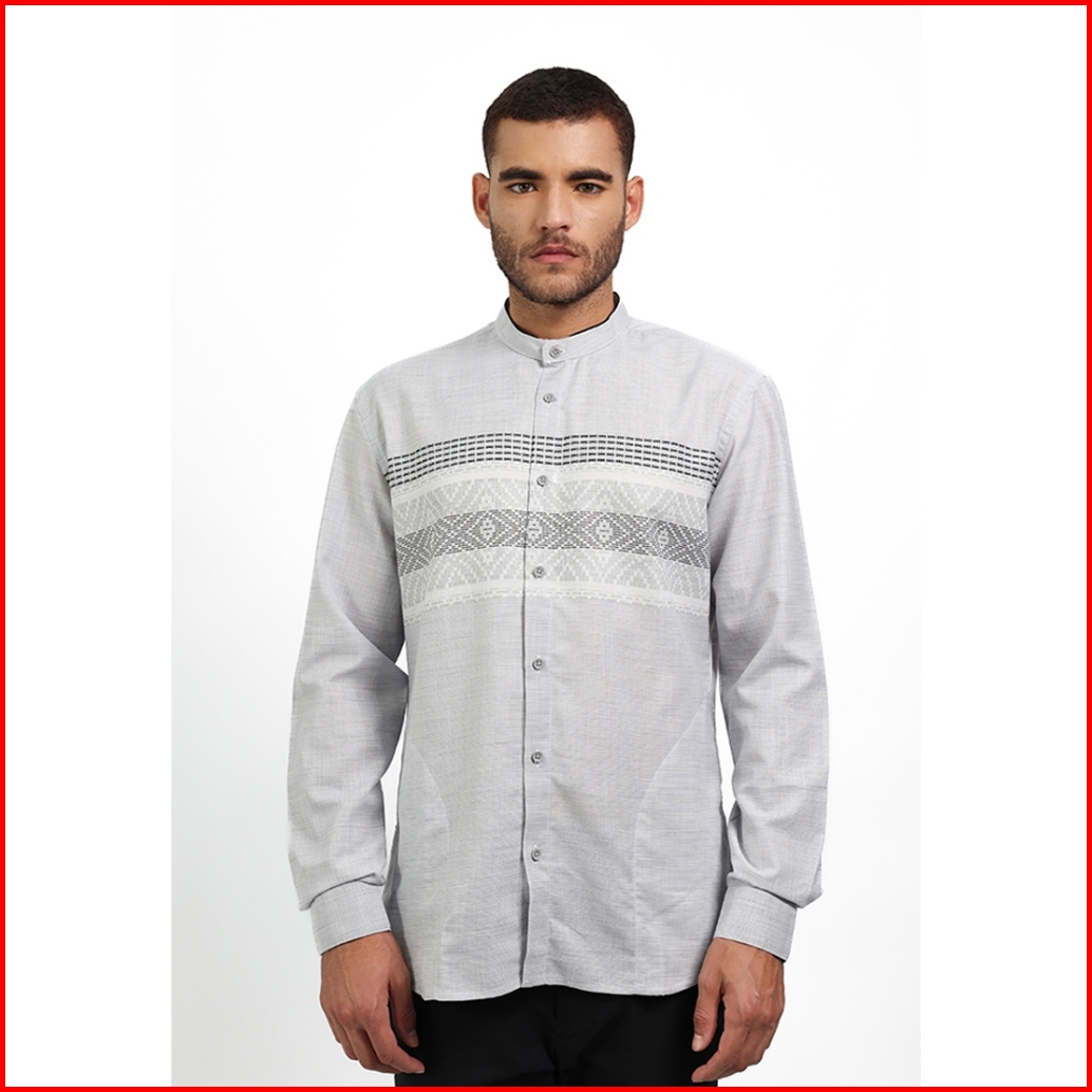 Moc Kemeja Koko Lengan Panjang Roman - Grey