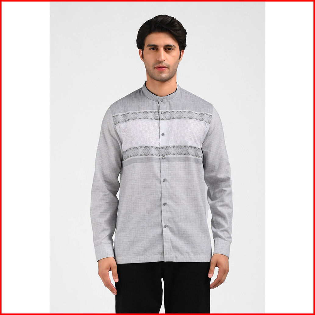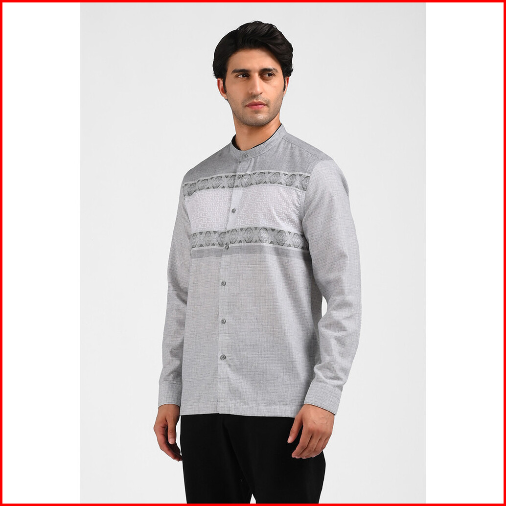 Moc Kemeja Koko Lengan Panjang Pria Kovarro-grey
