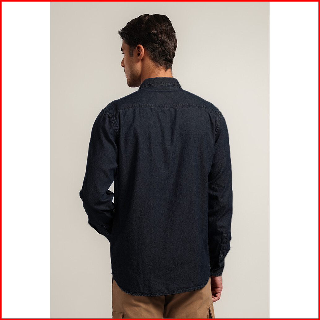 Moc Kemeja Denim Lengan Panjang Pria Saverus - Black