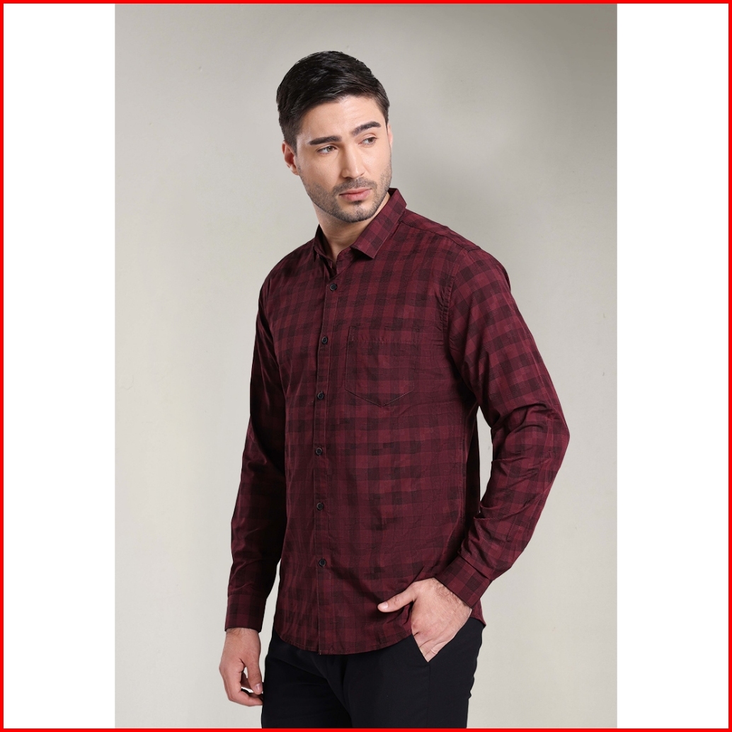 Moc Kemeja Lengan Panjang Pria Kent-maroon