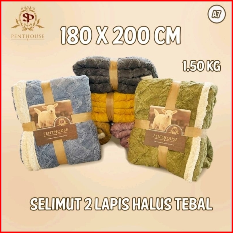 Selimut Bulu Domba 180 X200 Dua Sisi Tebal Super Soft Penthouse Selimut Lembut Dan Halus