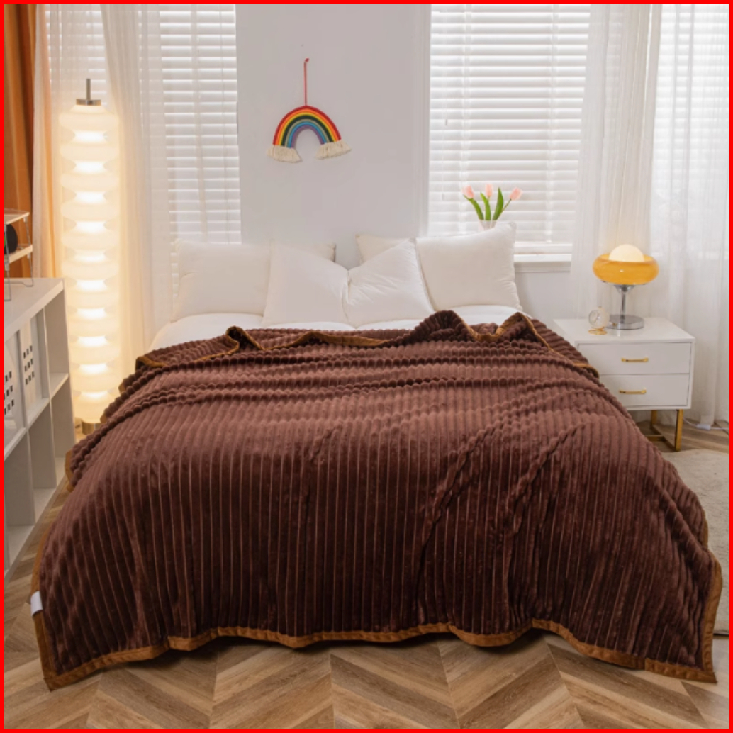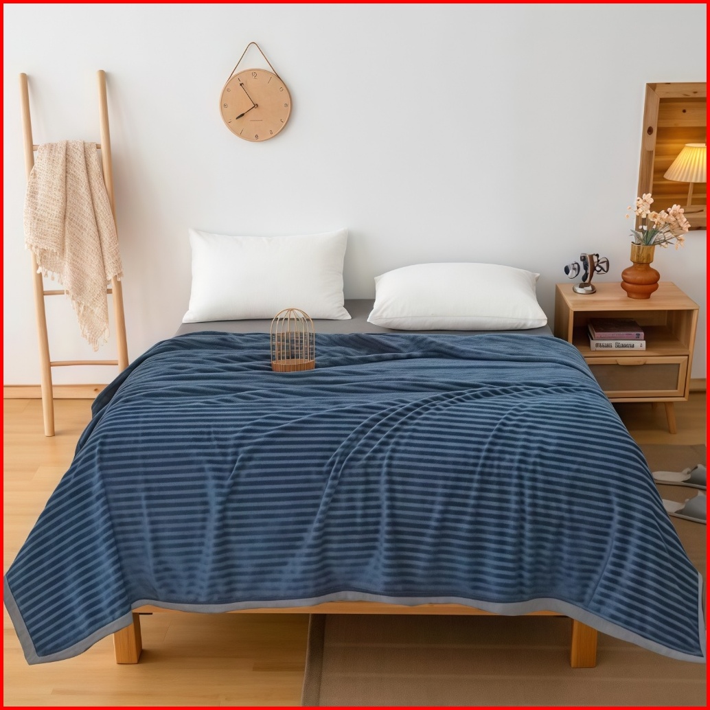 Mendale Selimut Dewasa Ukuran 200x220 Polos Embos Motif Salur Bulu Polyester