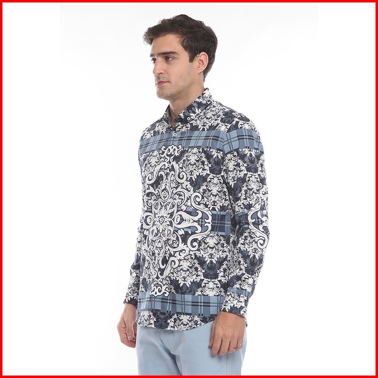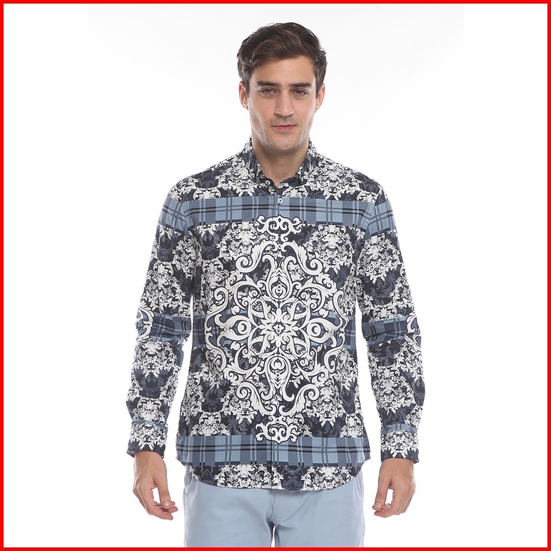 Moc Kemeja Lengan Panjang Pria Slim Fit Panama-grey