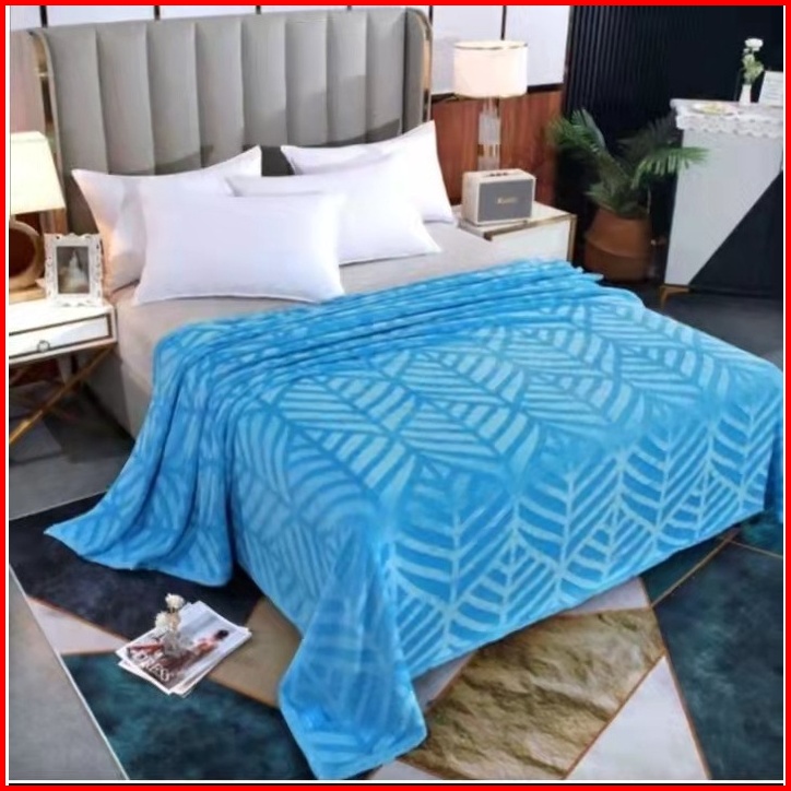 Selimut Bulu Flanel 150 200cm Lembut Tebal Import Polos Warna Motif Embos 2ukuran -