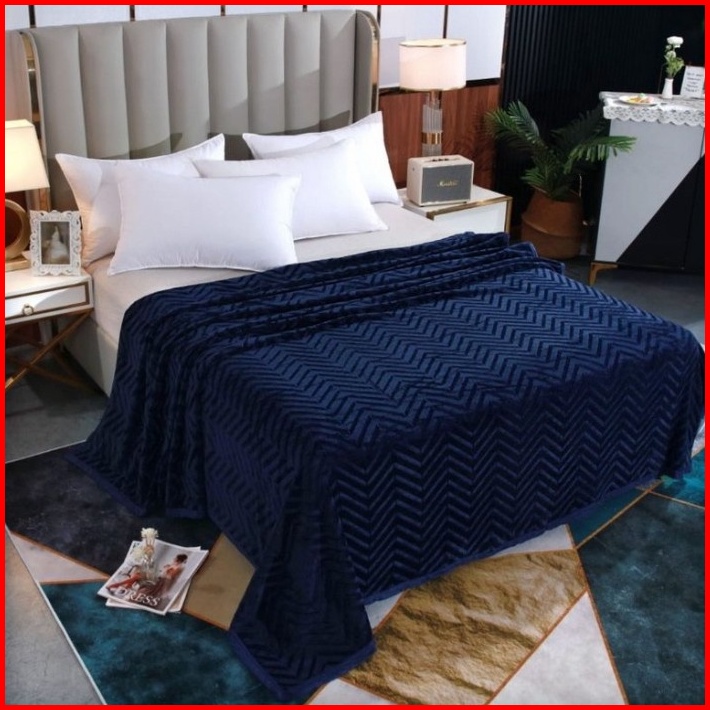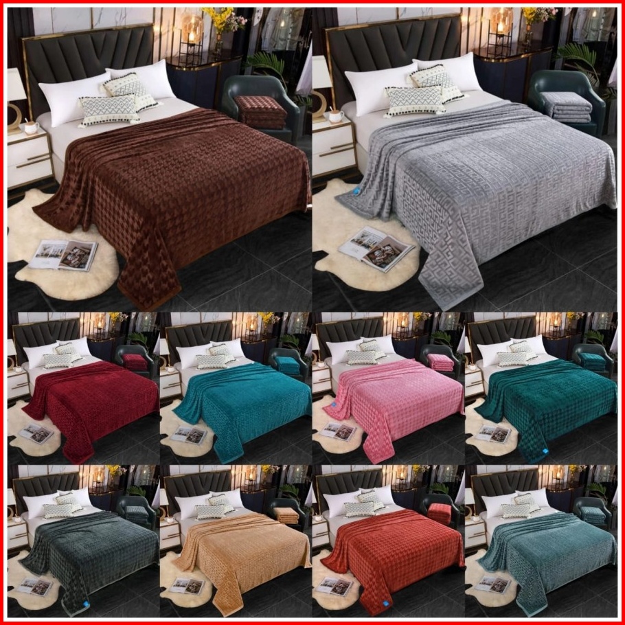 Selimut Bulu Flanel 200 230cm Motif Embos Lembut Tebal Import Polos Warna 3ukuran -