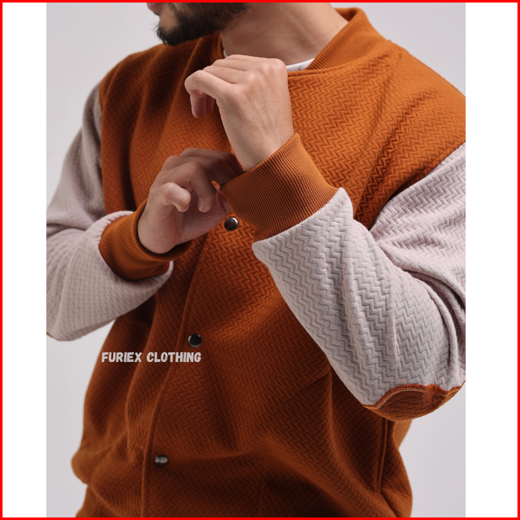 Furiex Jaket Varsity Pria Elbow Light Brown