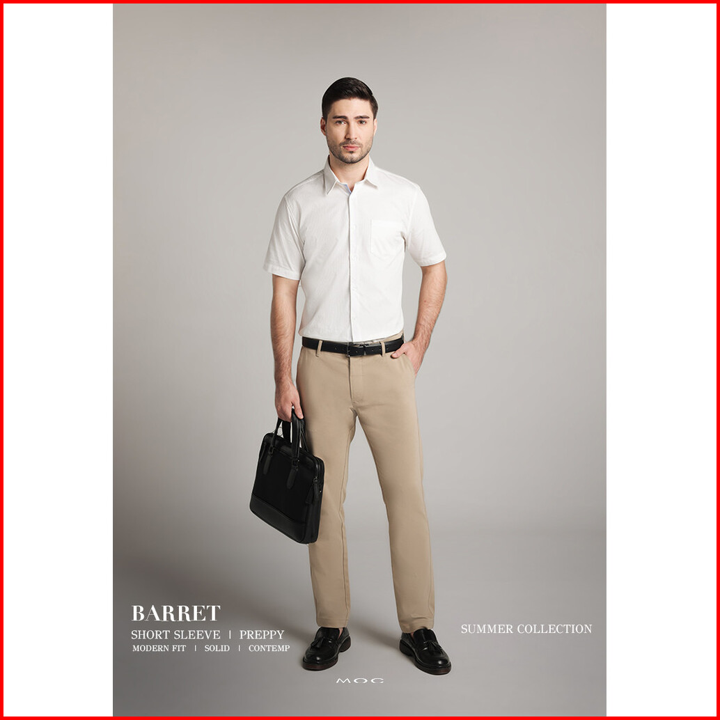 Moc Kemeja Lengan Pendek Pria Barret - White
