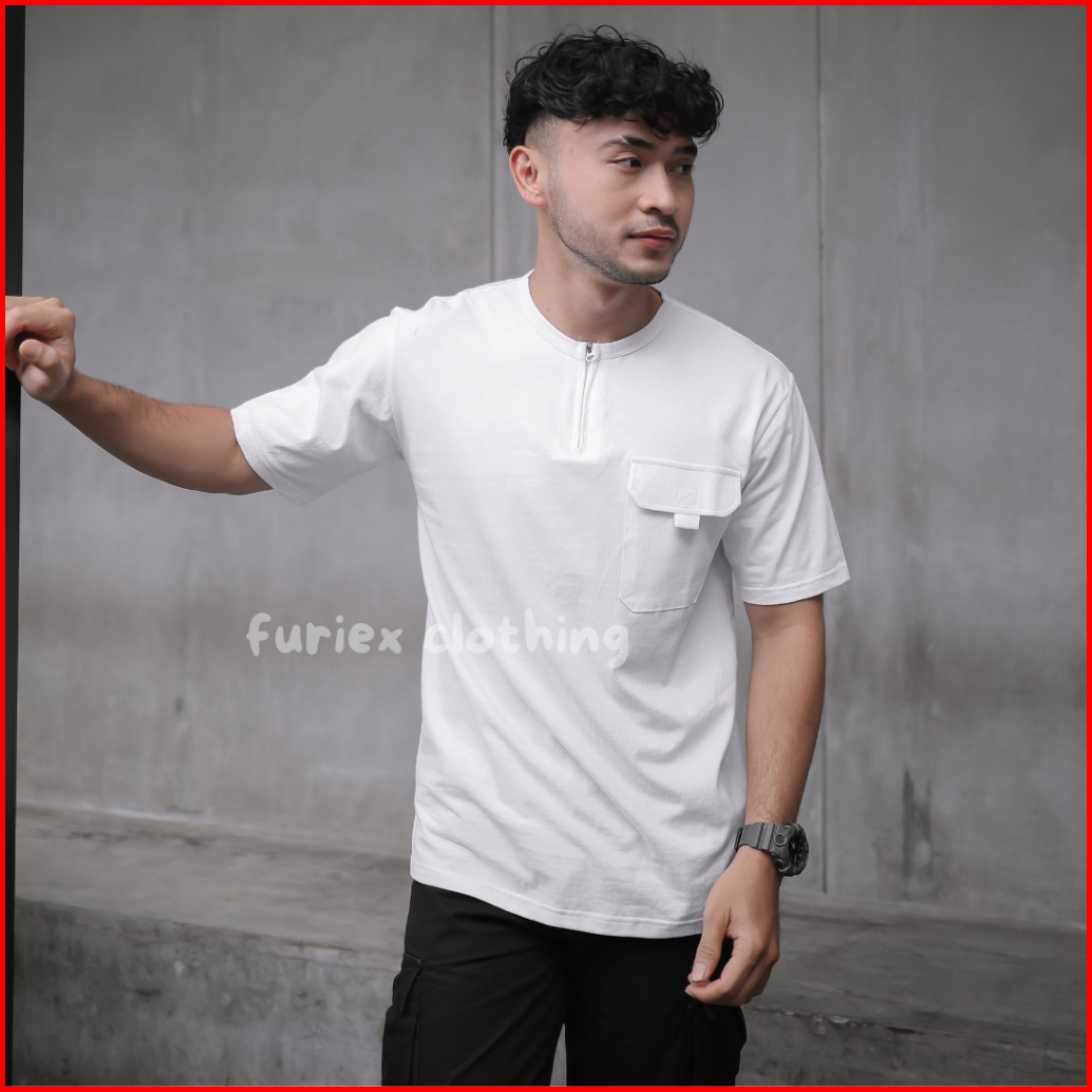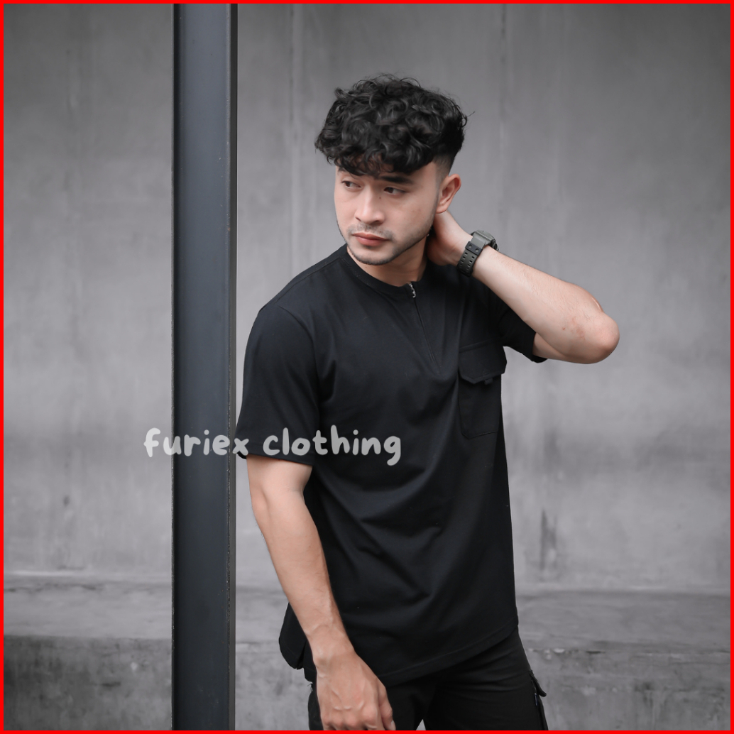 Furiex-kaos Pocket Zipper T-shirt Pocket Premium Kaos Pocket Pria Basic Katun 24s