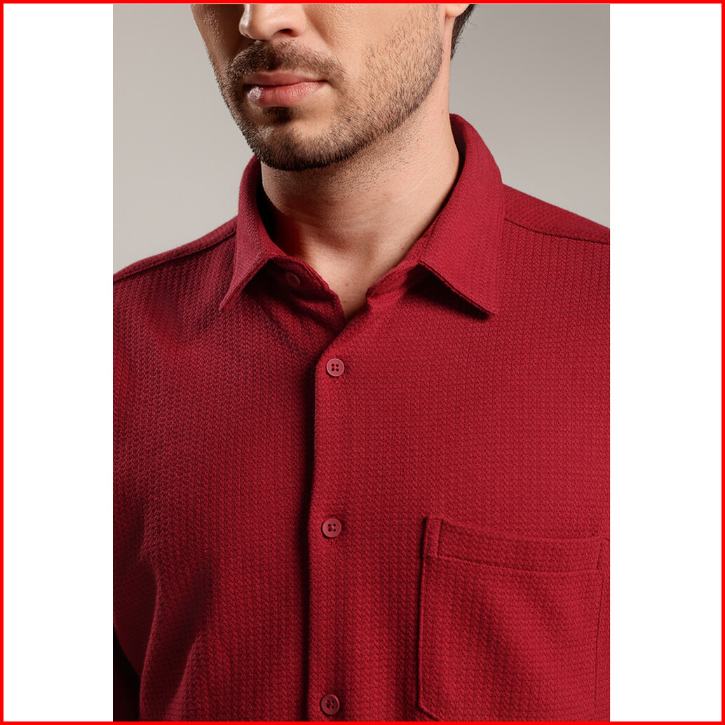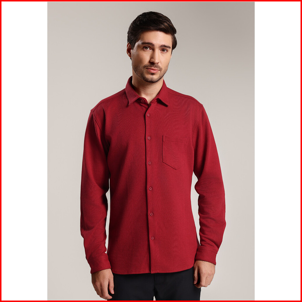 Moc - Kemeja Polos Pria Lengan Panjang Skye - Maroon