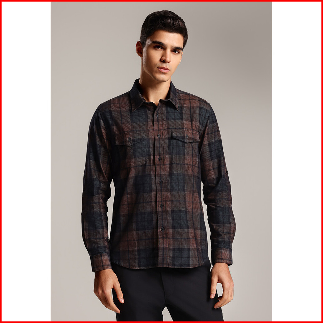 Moc - Kemeja Corduroy Kotak-kotak Pria Lengan Panjang Morric - Brown