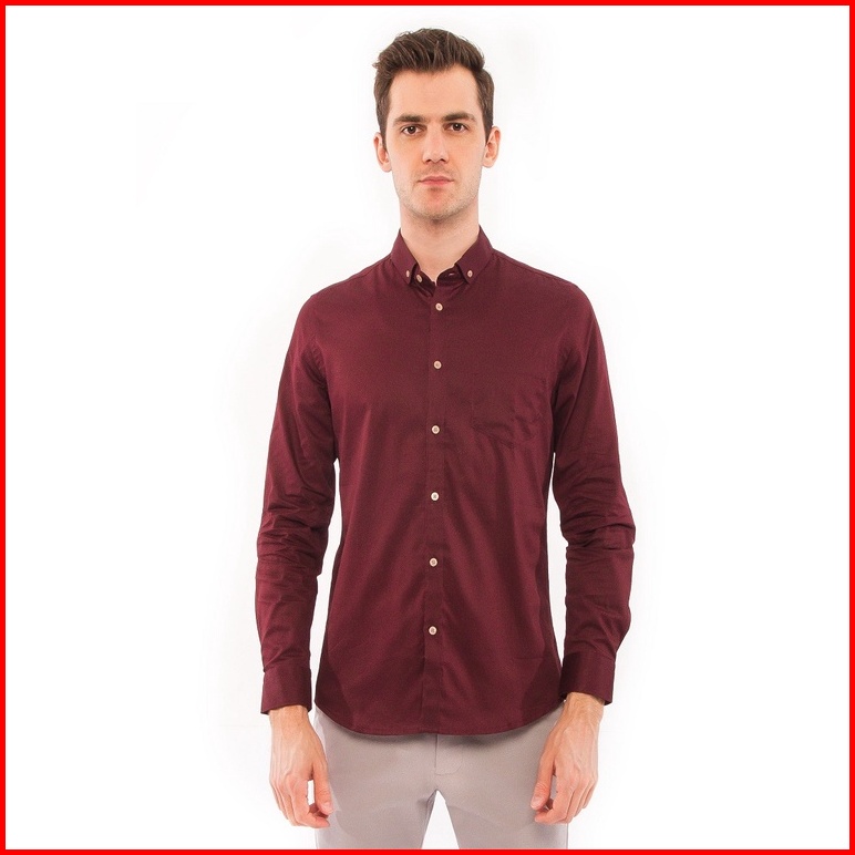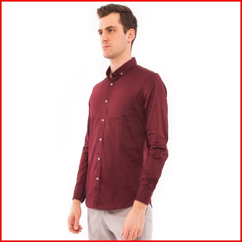 Moc Kemeja Lengan Panjang Pria Slim Fit Pixori Bestbuy-maroon