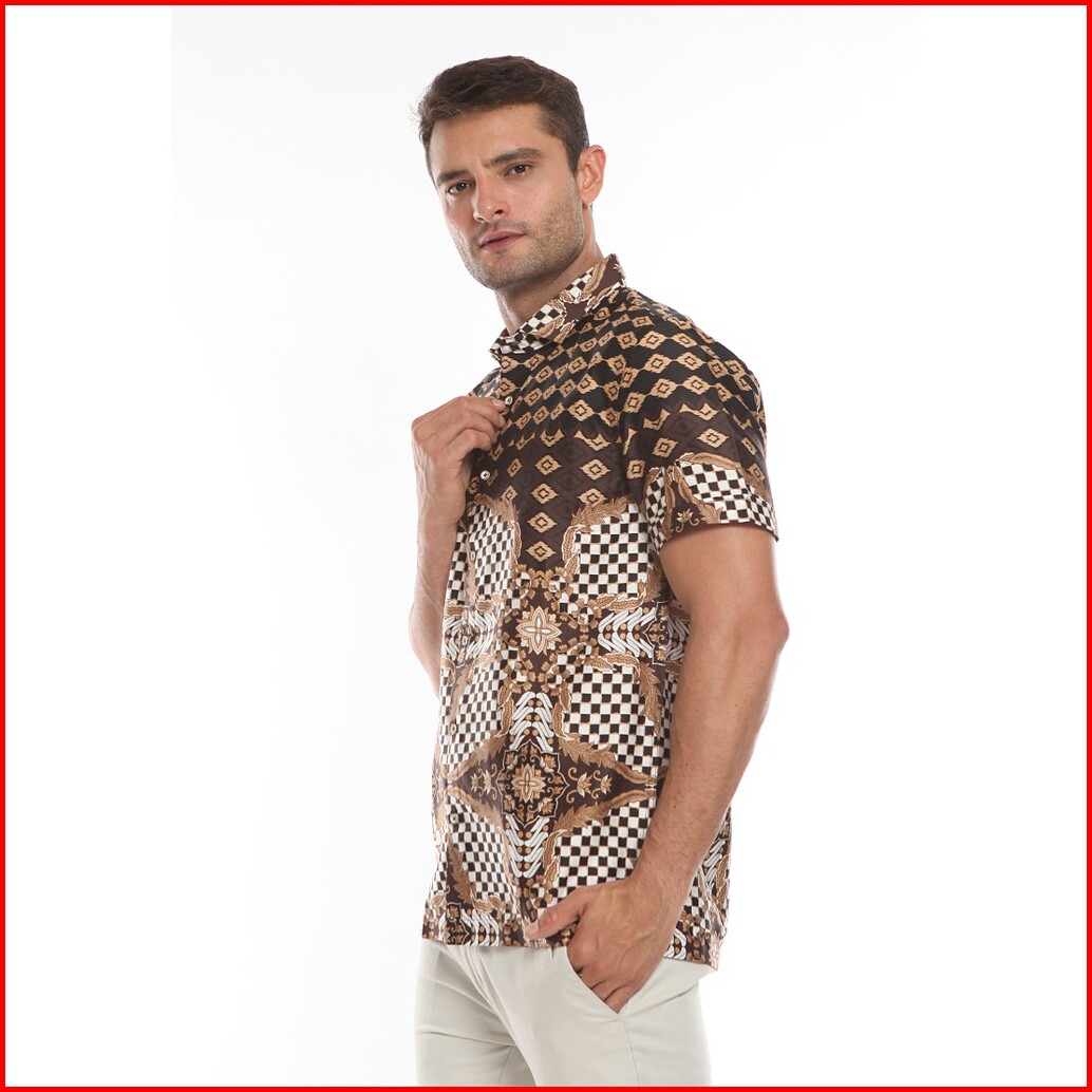 Moc Kemeja Batik Lengan Pendek Pria Modern Fit Sakheti-white