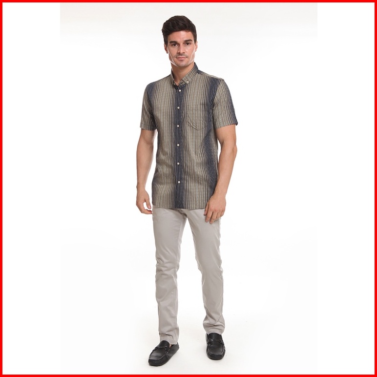 Moc Kemeja Lengan Pendek Pria Slim Fit Fumi-khaki