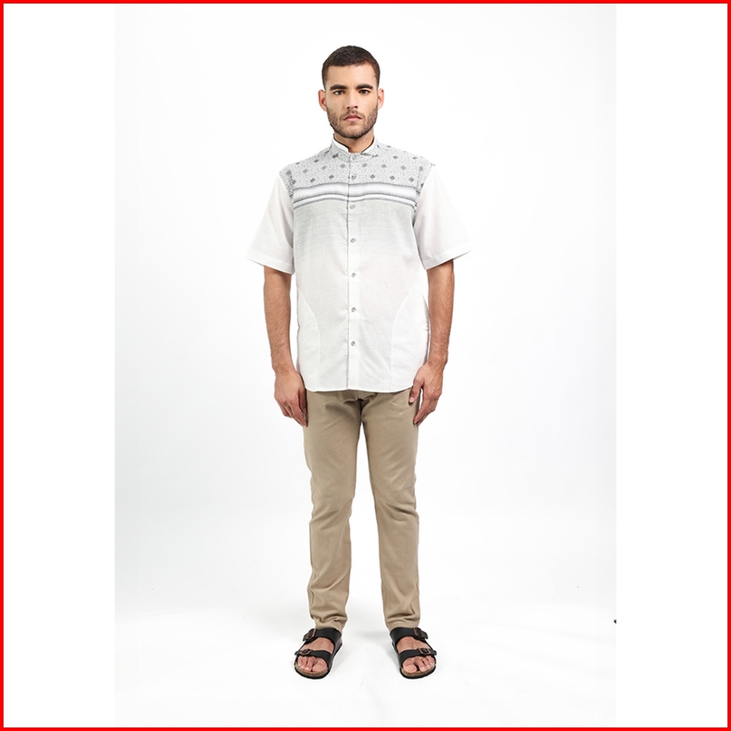Moc Kemeja Koko Lengan Pendek Pria Abram - White
