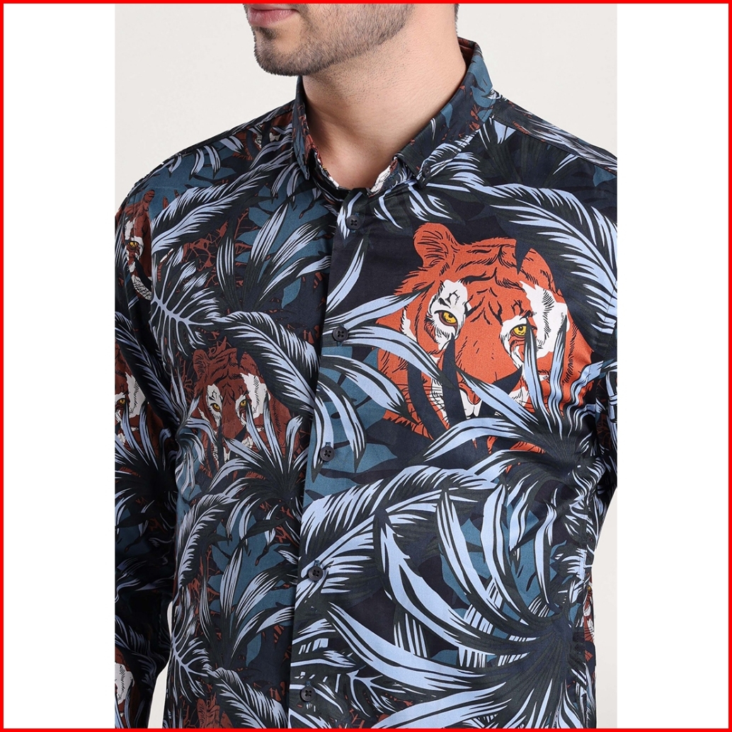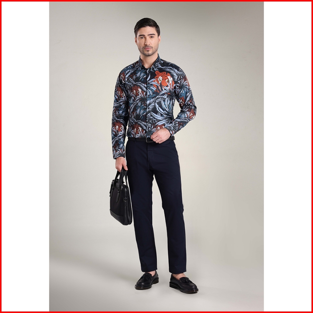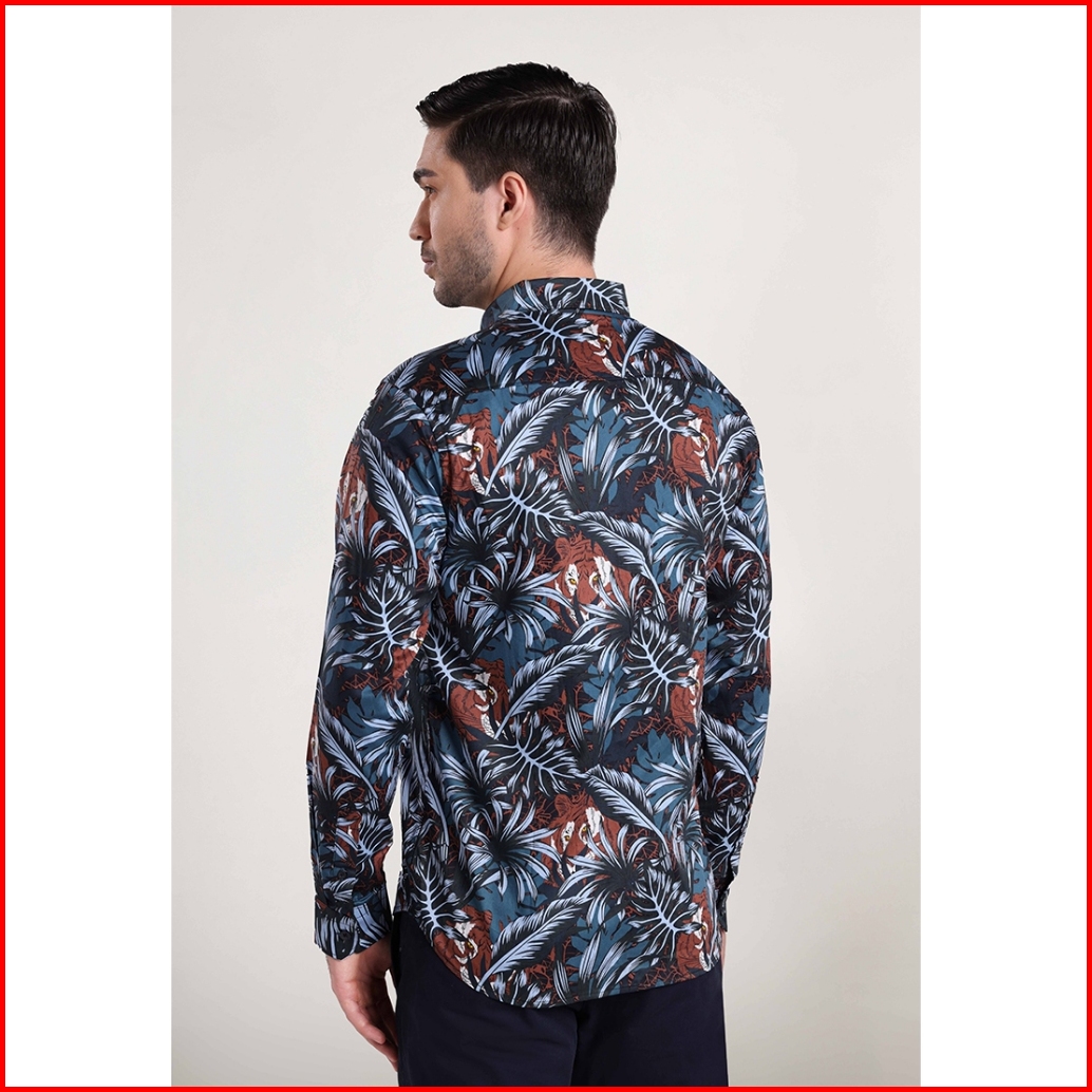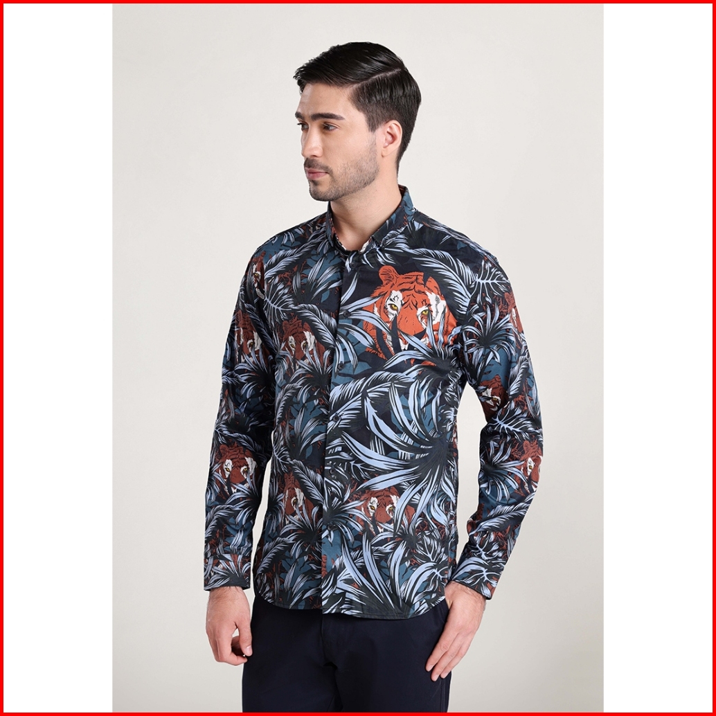 Moc Kemeja Lengan Panjang Pria Thiger-dark Grey