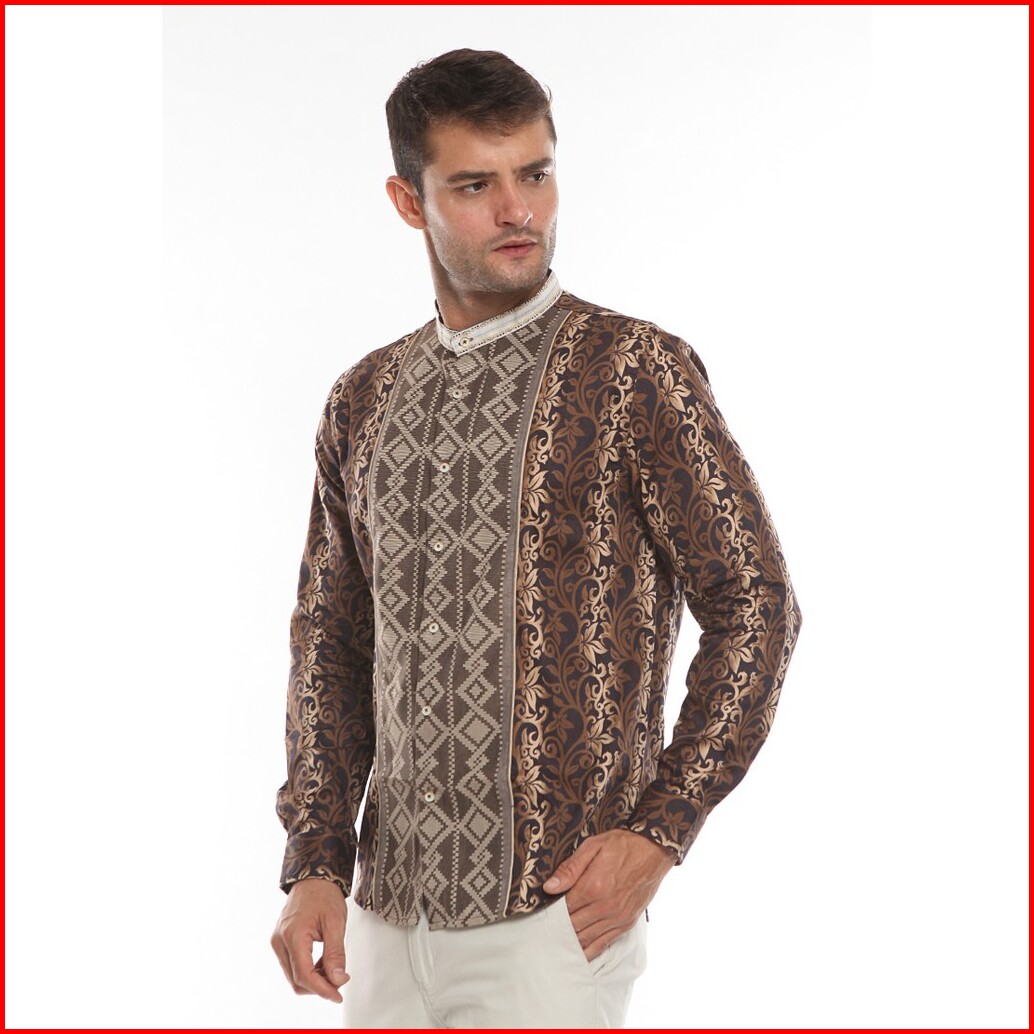 Moc Kemeja Koko Lengan Panjang Pria Modern Fit Luoss-brown