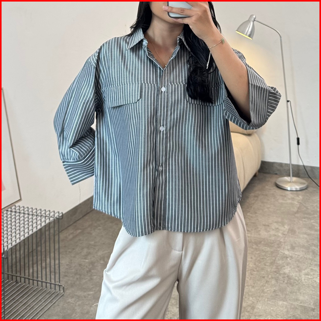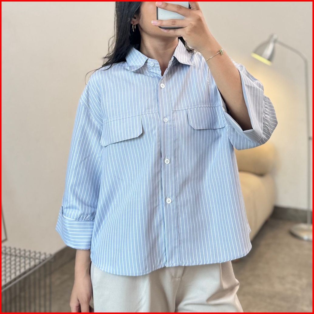 Teal Shirt - Kemeja Basic Stripe Oversize Lengan Panjang - Kemeja Kantor Formal Wanita