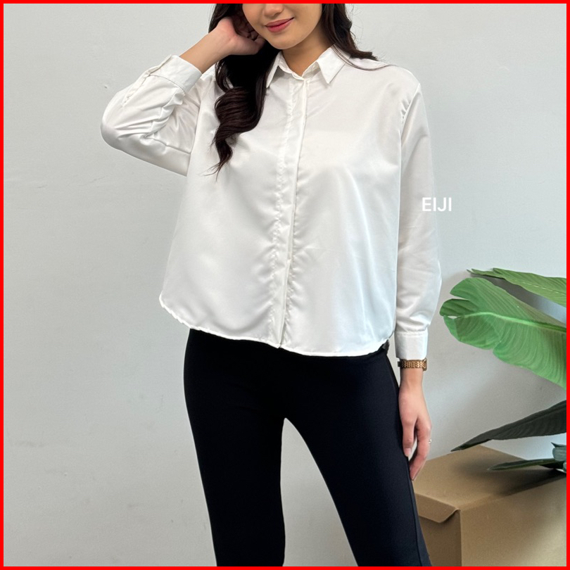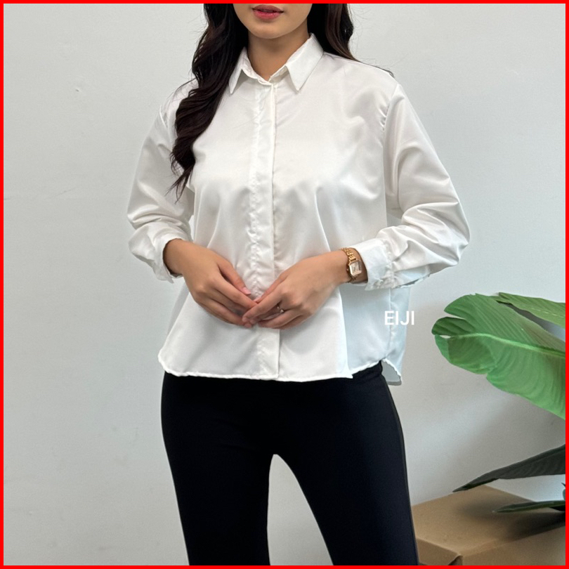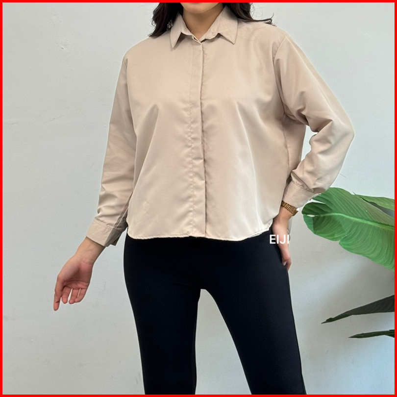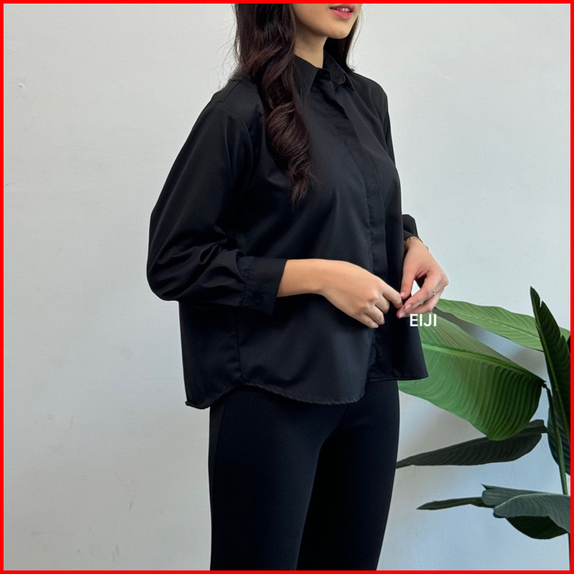Como Shirt - Kemeja Basic Formal Lengan Panjang - Atasan Kantor Polos Wanita Cotton Toyobo