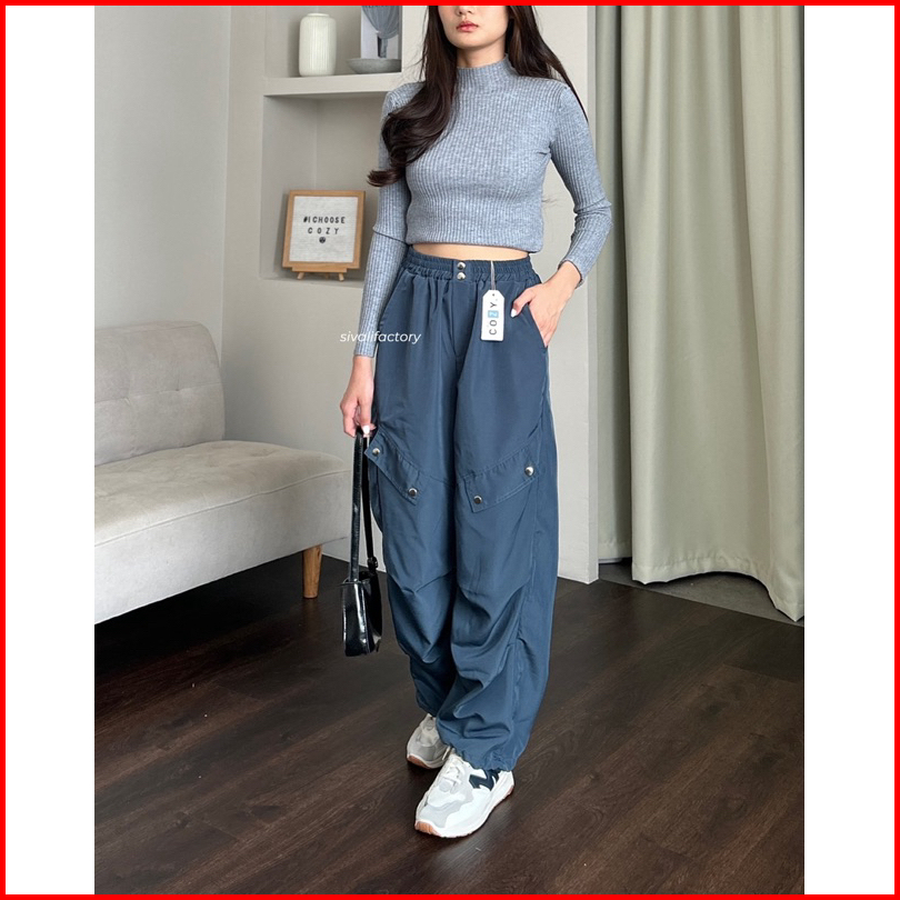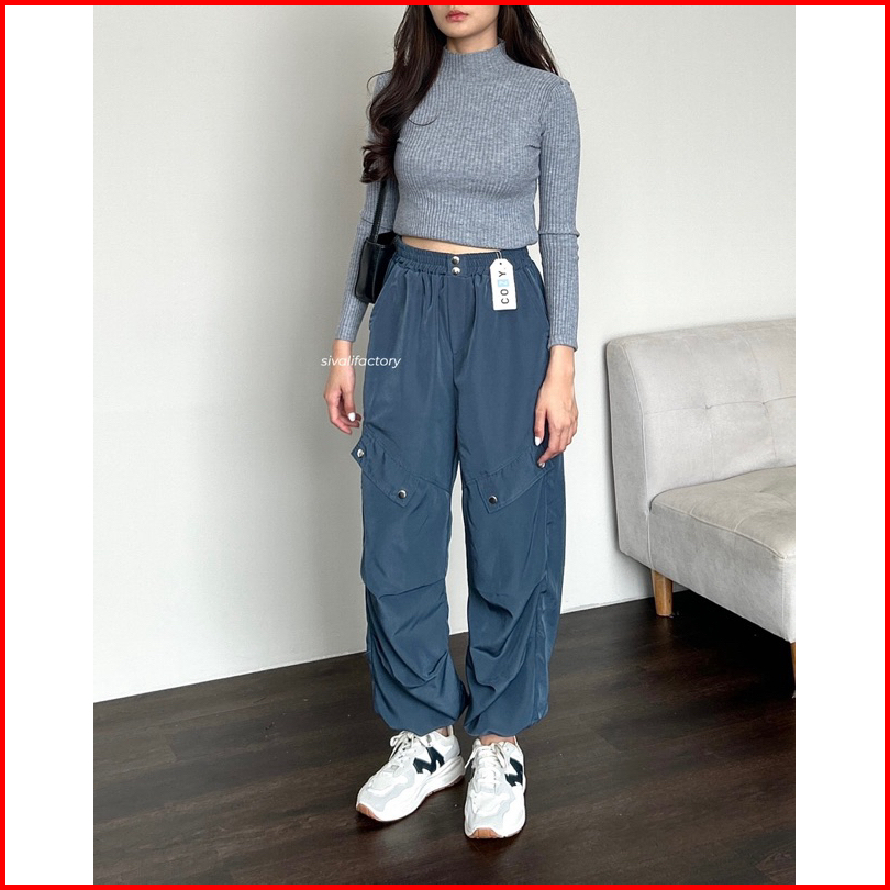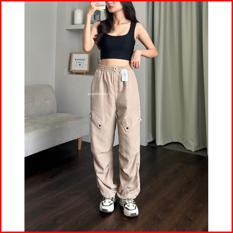 Sivali Como Pants - Celana Kulot Jogger Cargo Serut Highwaist - Kargo Wanita