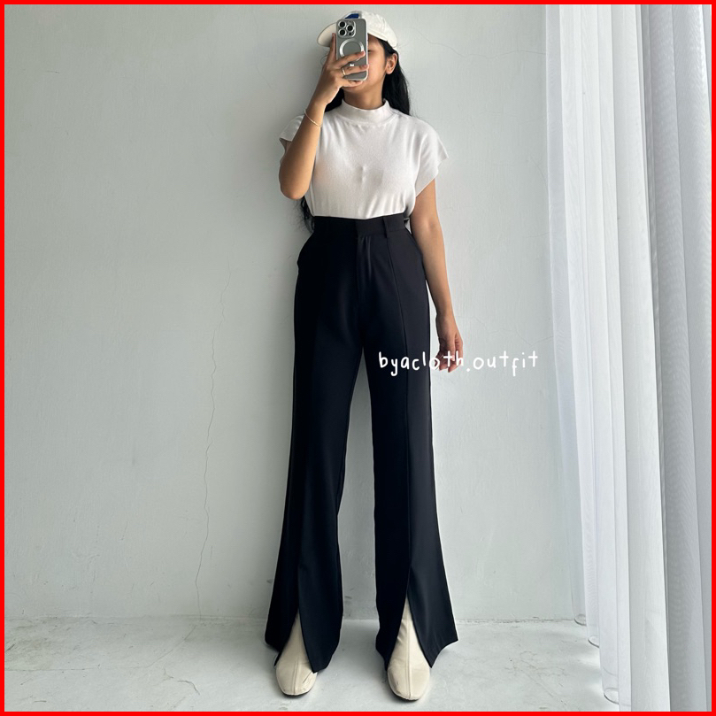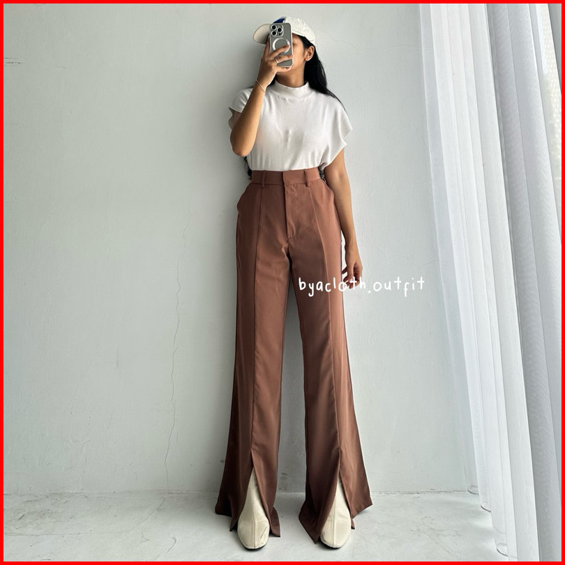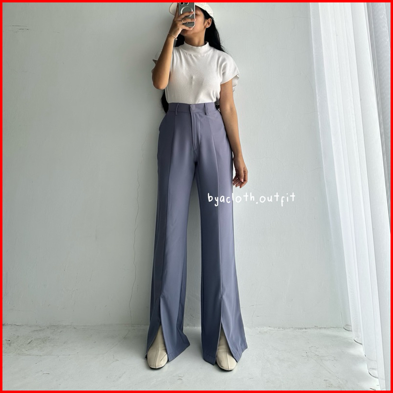 Byacloth Fana Slit Pants - Loose Pants Trouser Wanita - Celana Anti Kusut - Kulot Kerja Formal Wanita