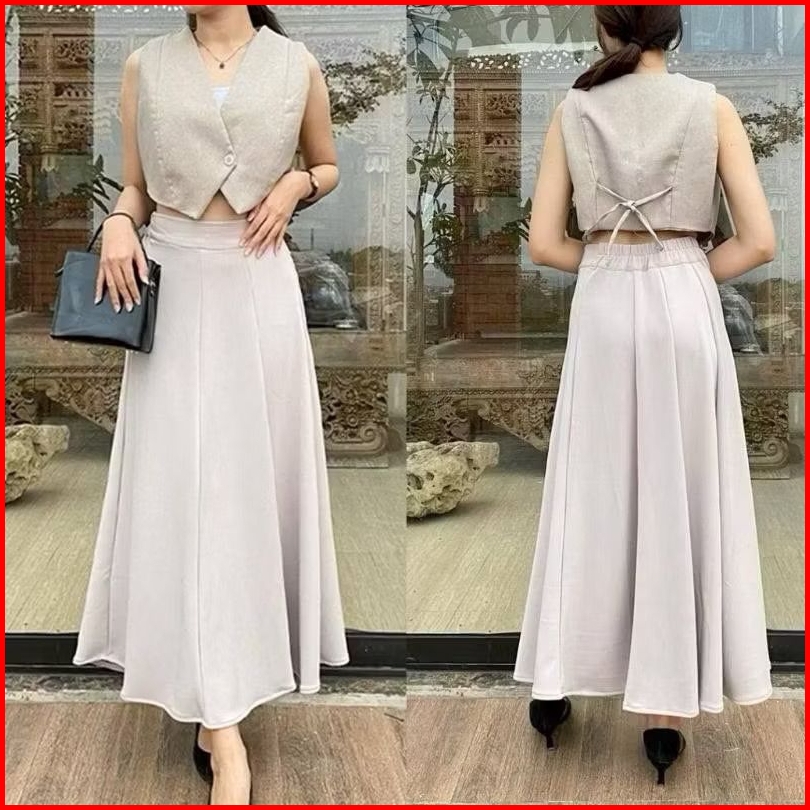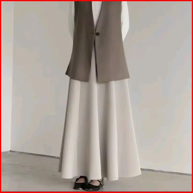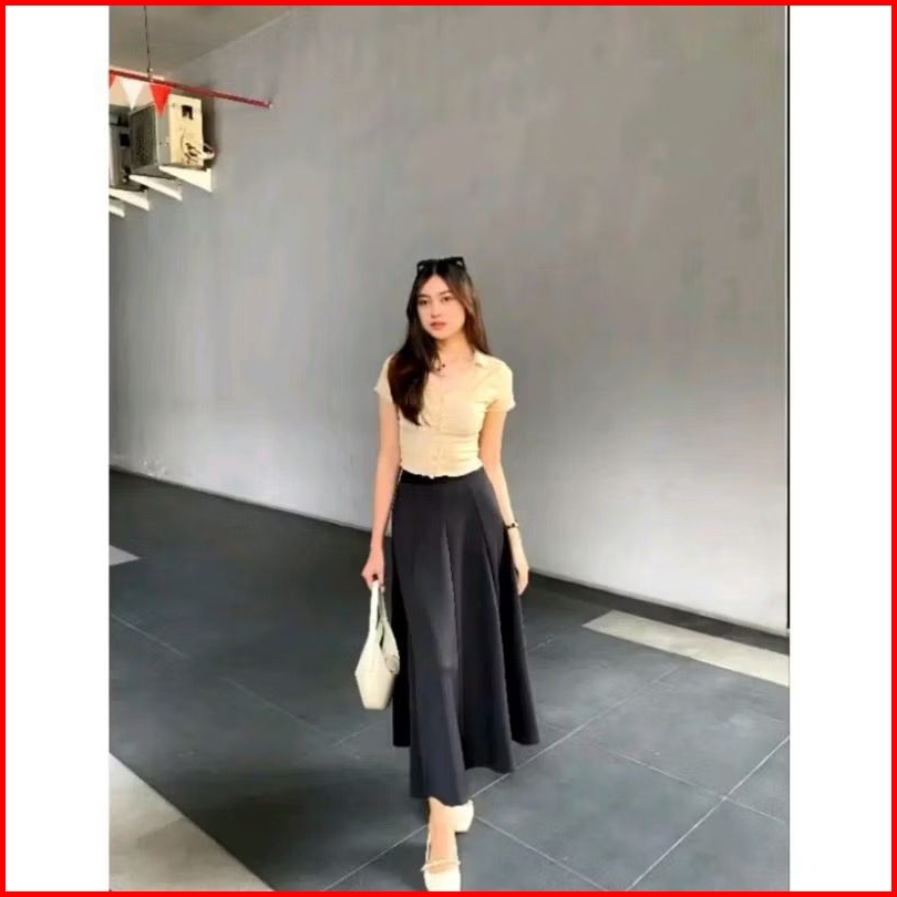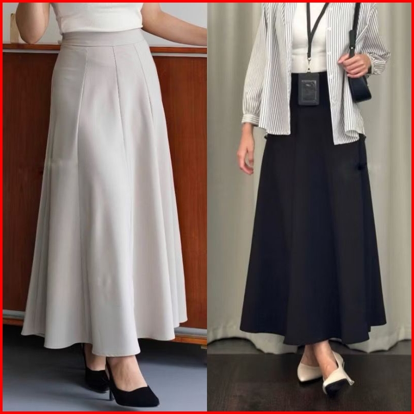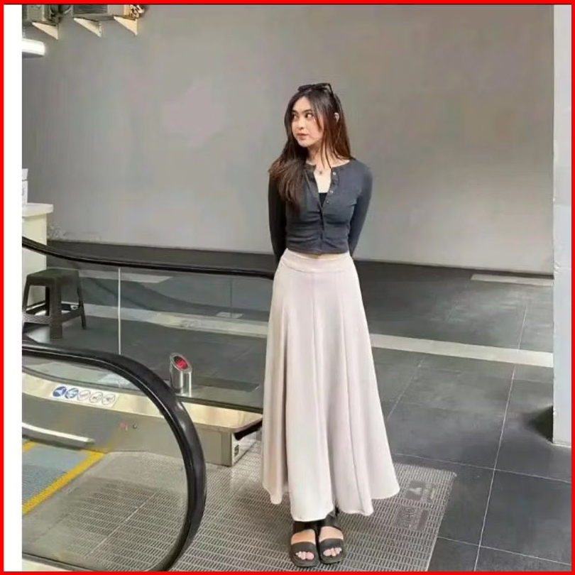 Audy Skirt - Korean Loose Maxi Skirt Rok Wanita Anti Kusut Polyester - Rok Flare Wanita - Rok Basic Polos - Maxi Skirt R
