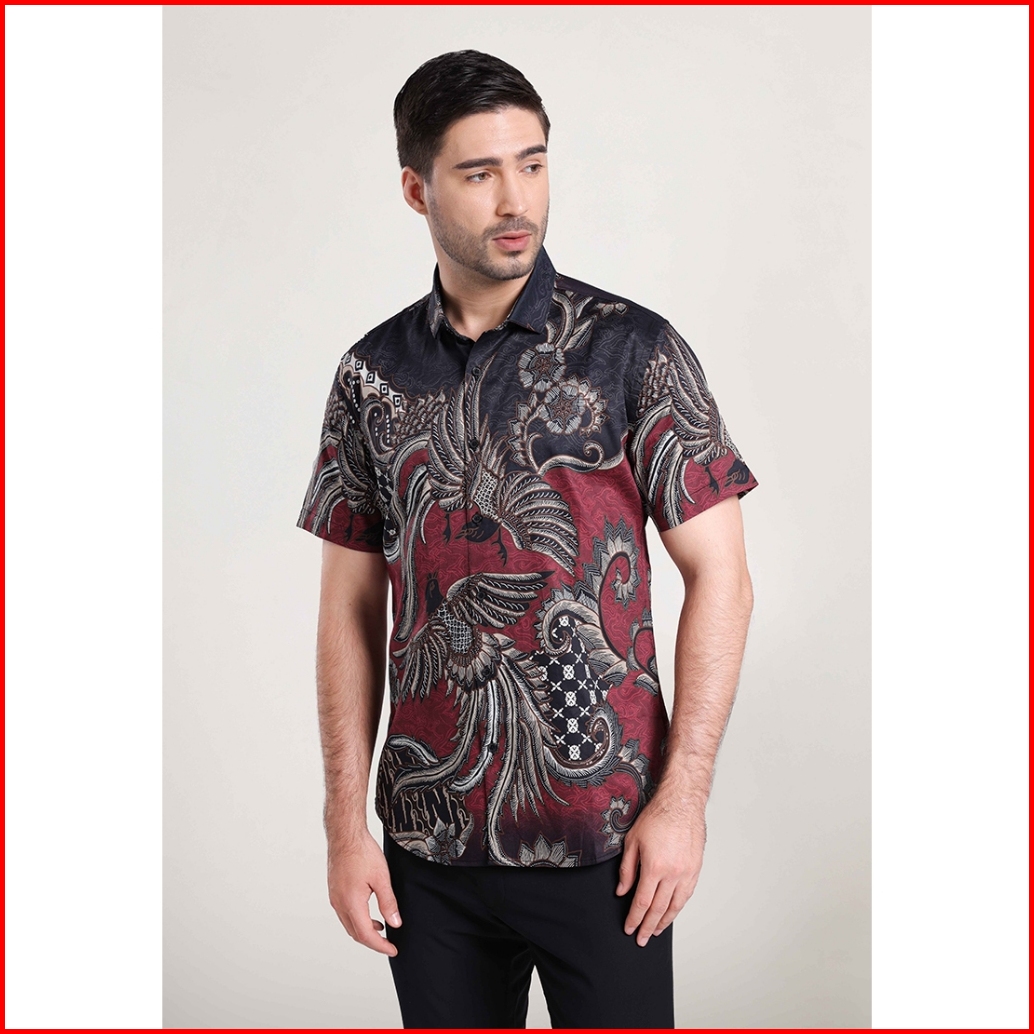 Moc Kemeja Batik Lengan Pendek Pria Hara-maroon
