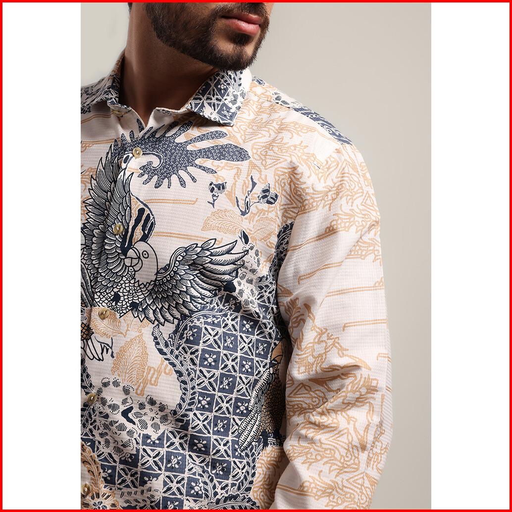 Moc - Kemeja Batik Pria Lengan Panjang Yogiswara - White