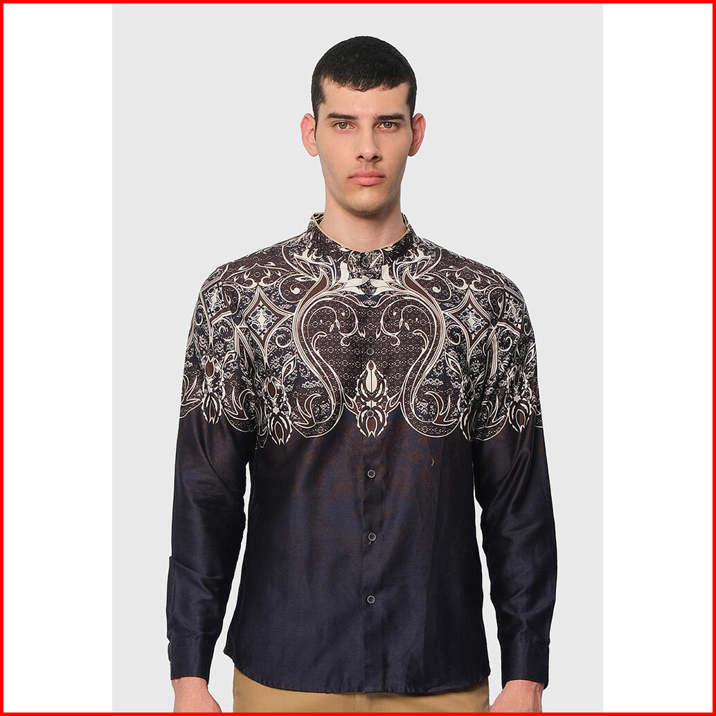 Moc Kemeja Batik Shanghai Lengan Panjang Pria Sorley-navy
