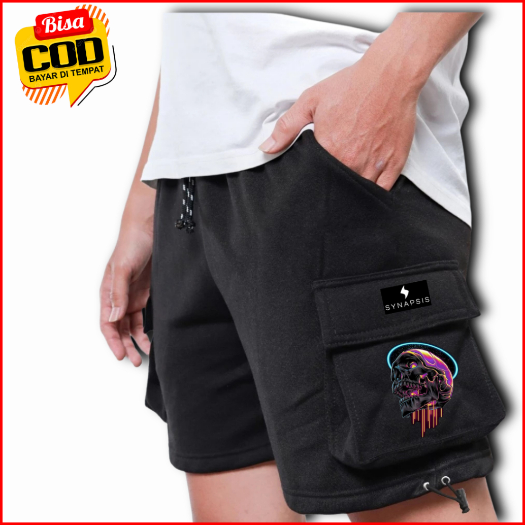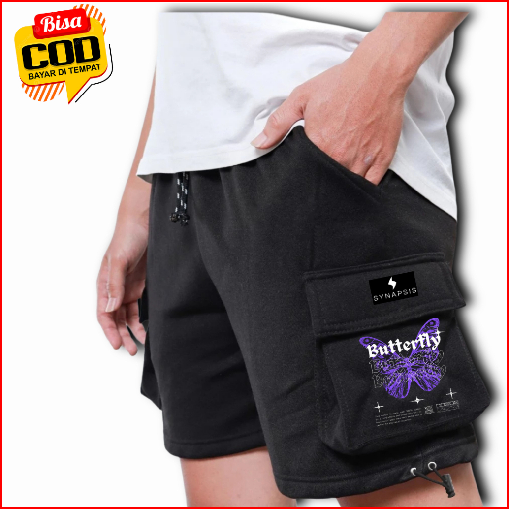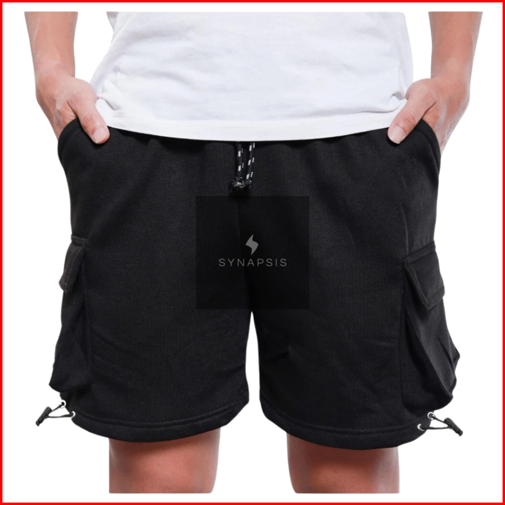 Celana Cargo Pendek Bahan Fleece Stylish Casual Santai Trendy Pria Wanita Hitam Premium Kekinian