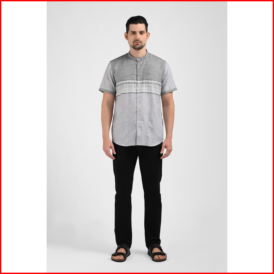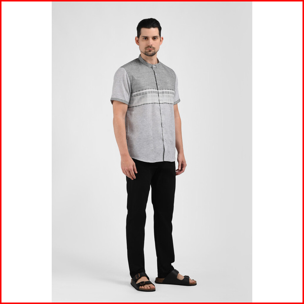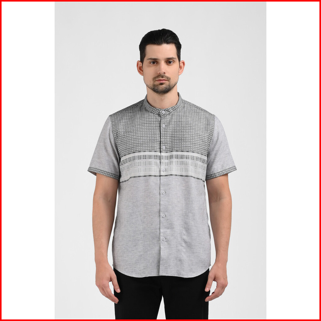 Moc Kemeja Koko Lengan Pendek Pria Lutho-grey