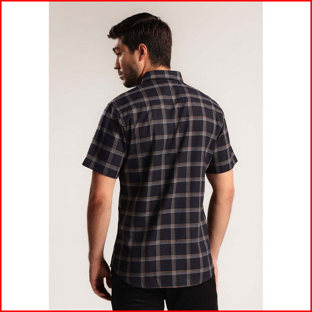 Moc - Kemeja Kotak-kotak Pria Lengan Pendek Daltos - Black