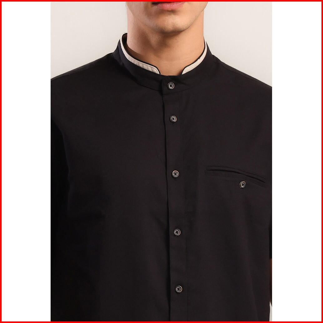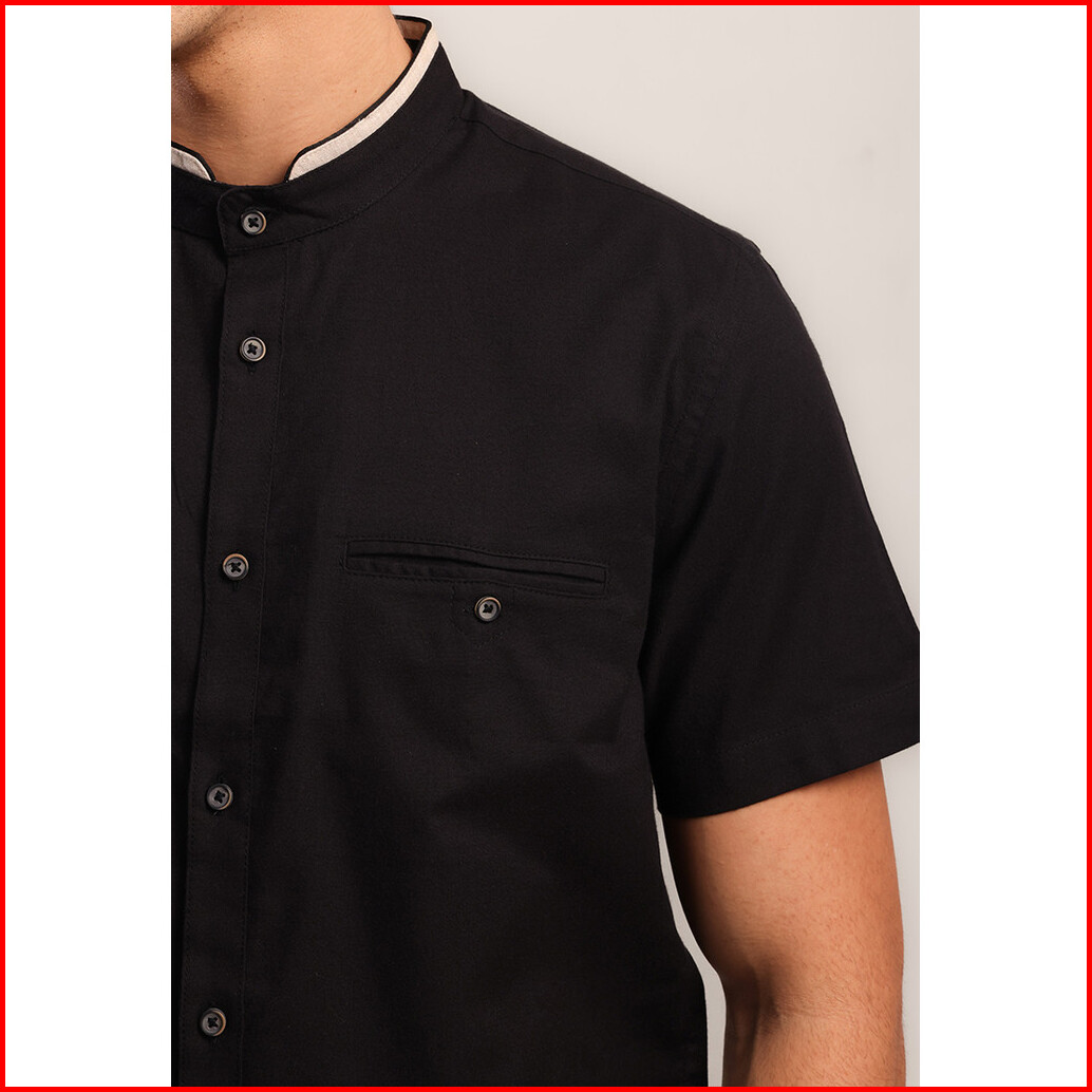 Moc Kemeja Shanghai Lengan Pendek Pria Hayyan - Black