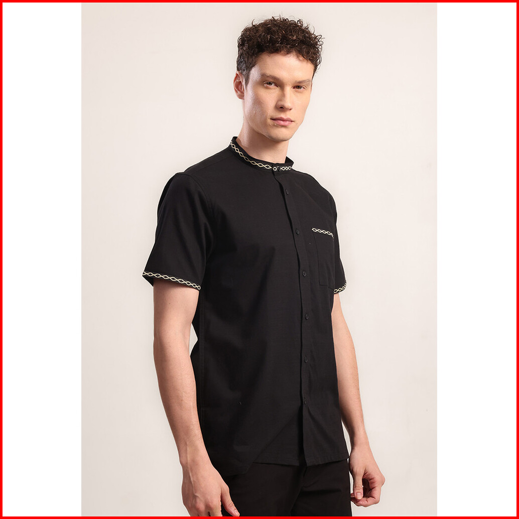 Moc Kemeja Shanghai Lengan Pendek Pria Fauzan - Black