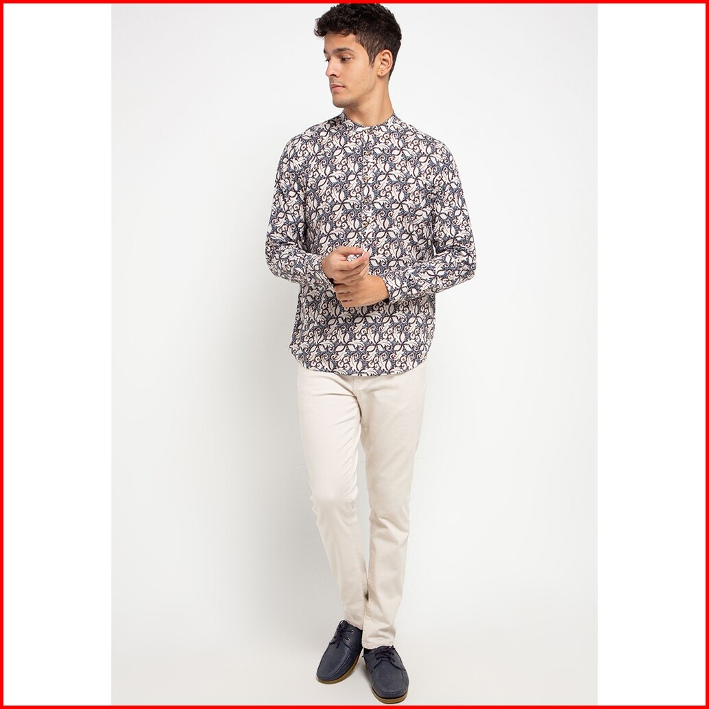 Moc Kemeja Shanghai Lengan Panjang Pria Ley-cream