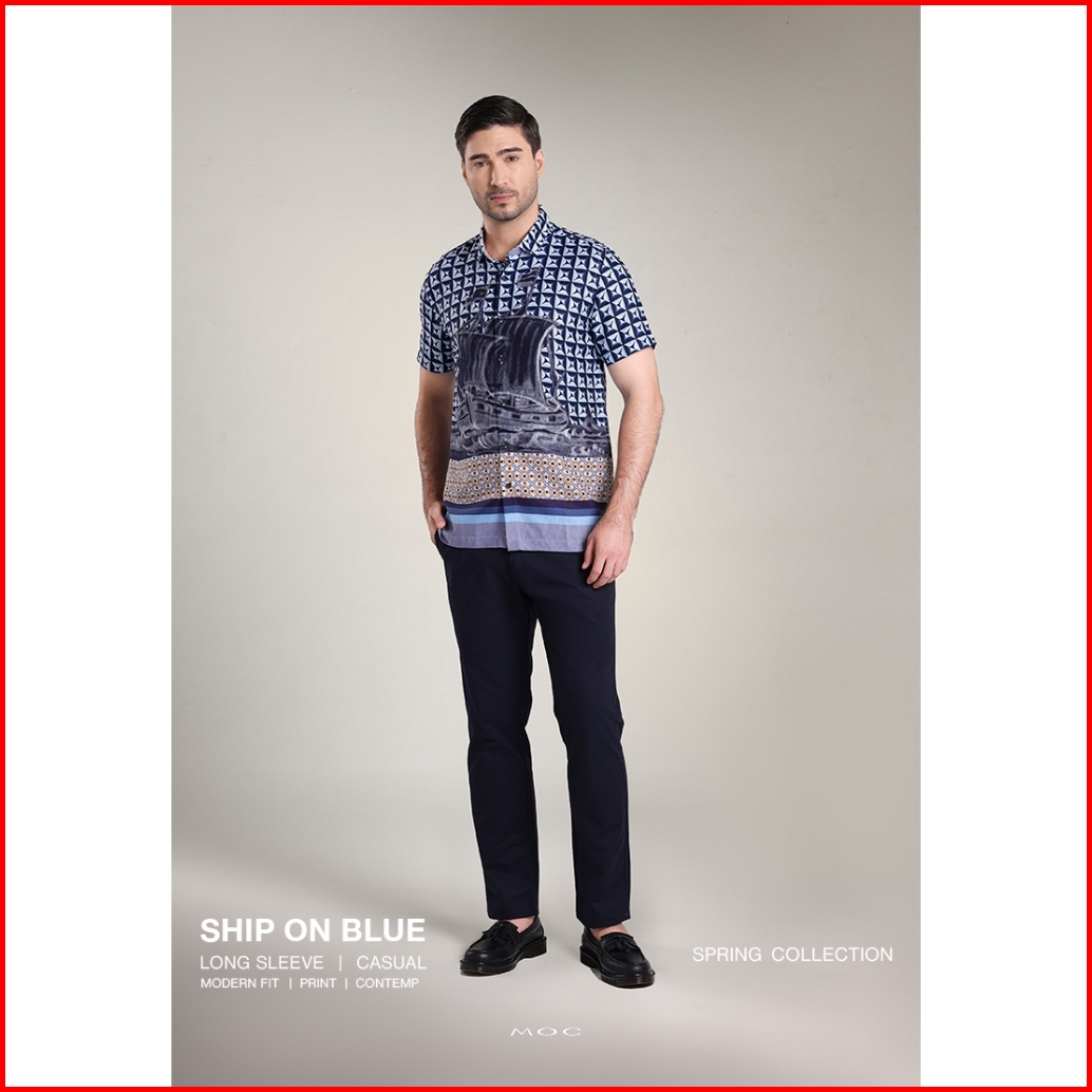 Moc Kemeja Lengan Pendek Pria Ship On - Blue