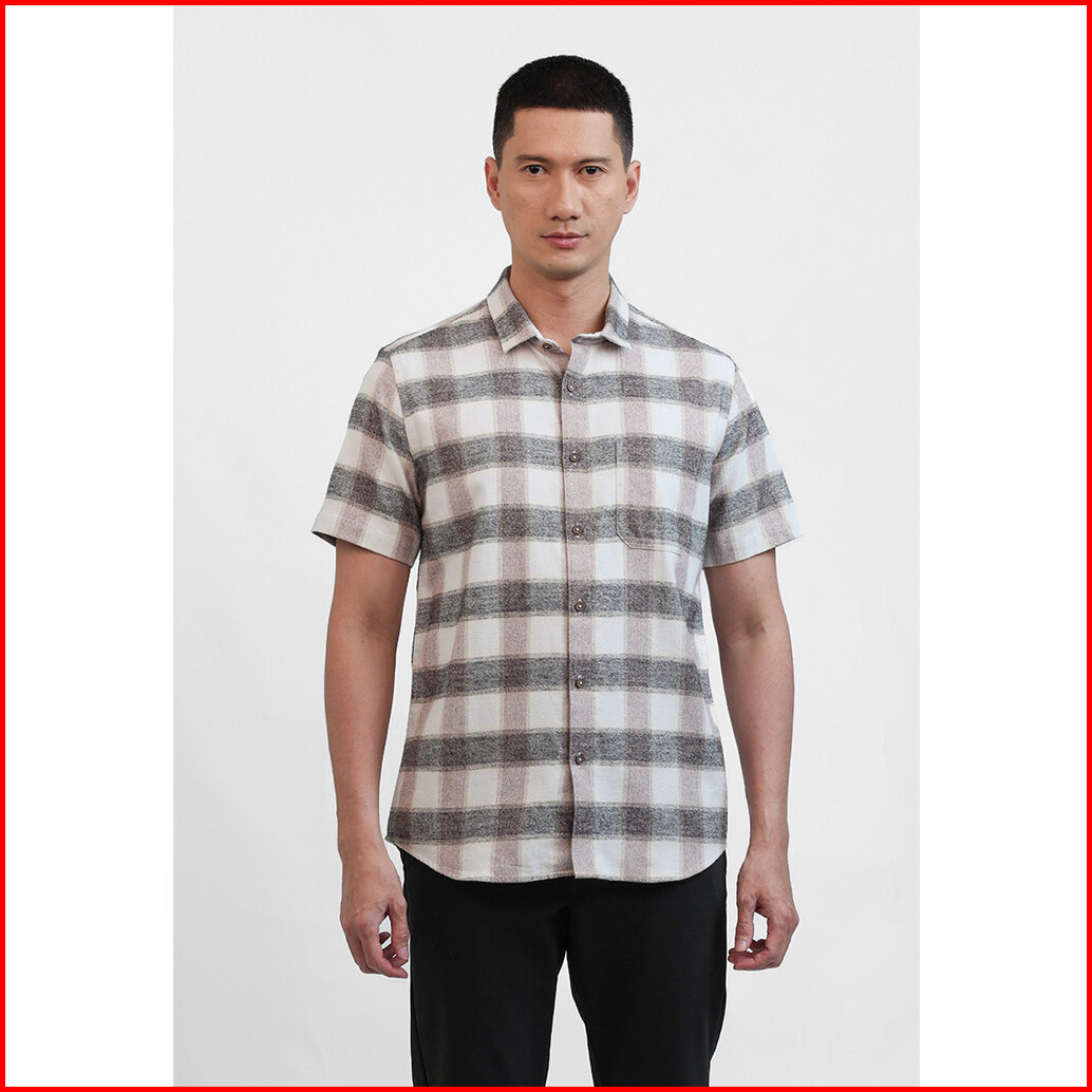Moc Kemeja Lengan Pendek Pria Hugos - Brown