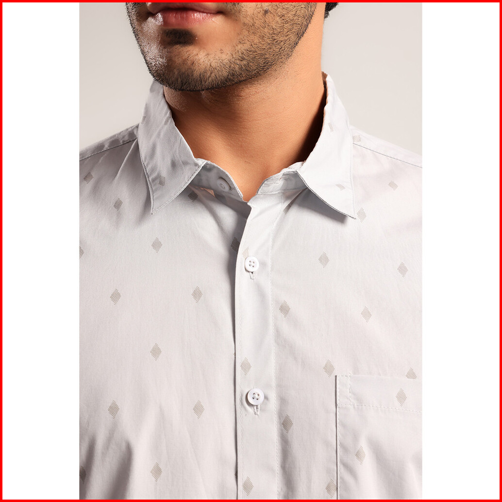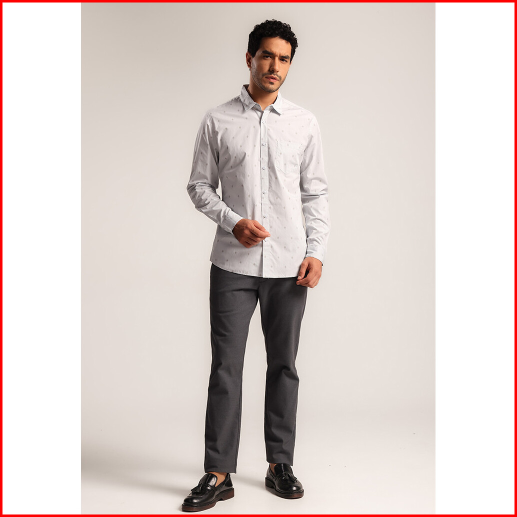 Moc - Kemeja Motif Pria Lengan Panjang Grego - Grey Light