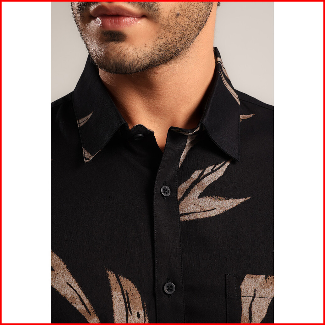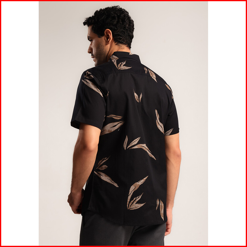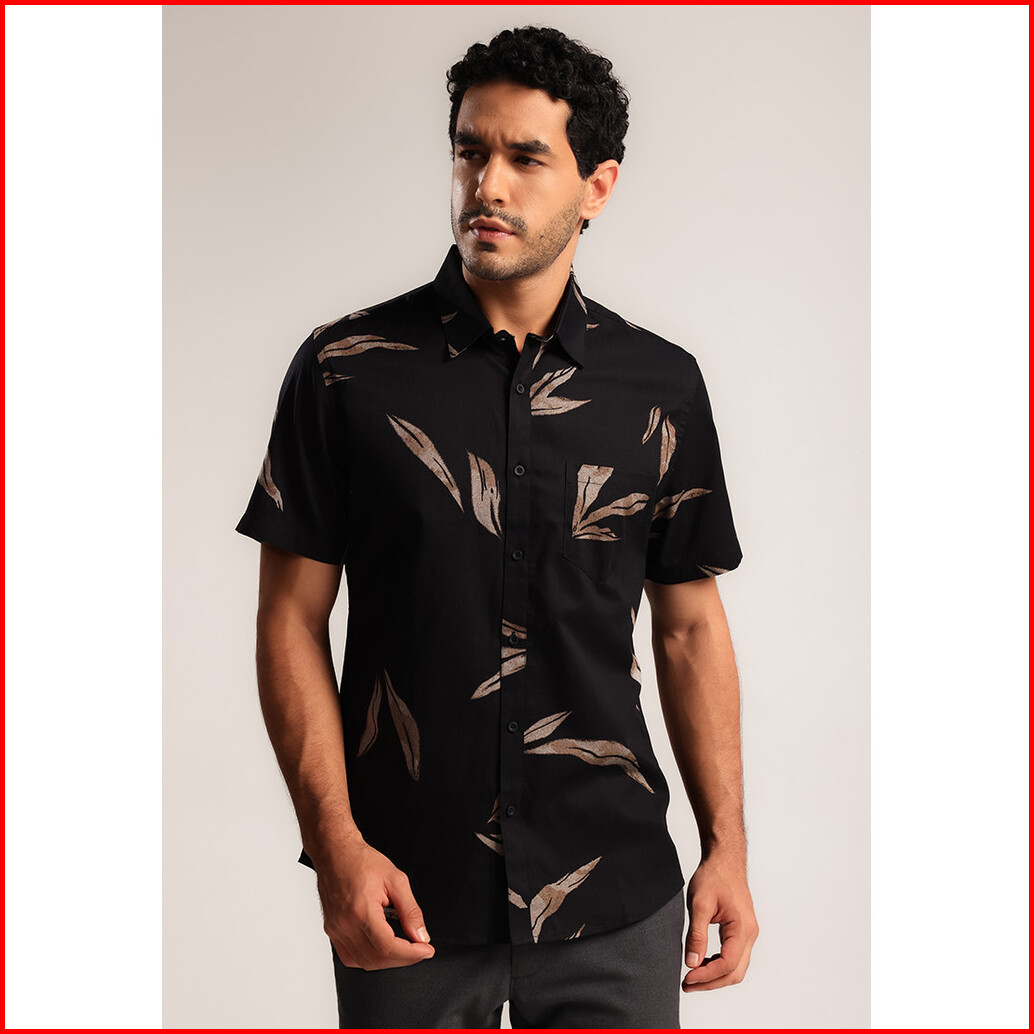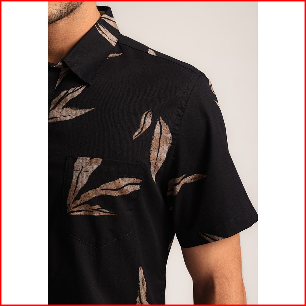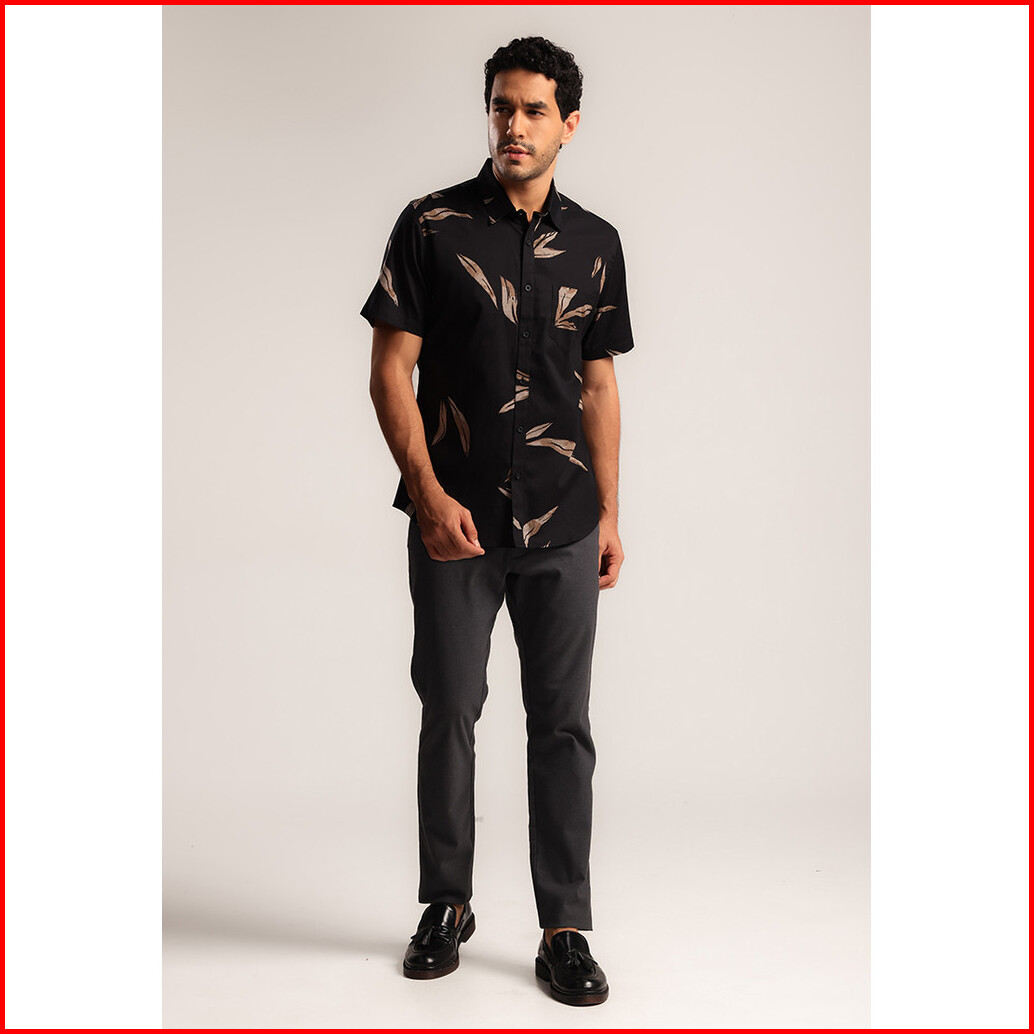 Moc - Kemeja Motif Pria Lengan Pendek Nirved - Black