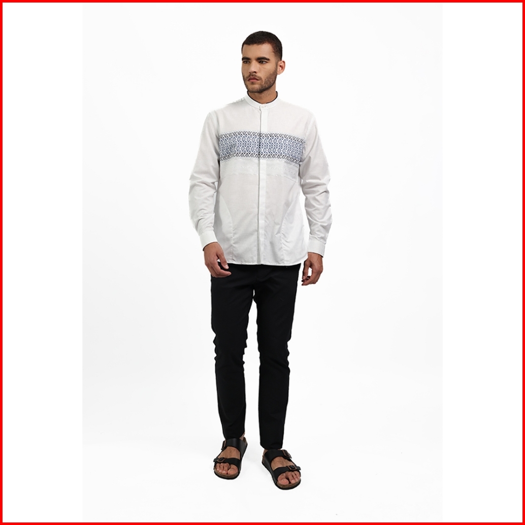 Moc Kemeja Koko Lengan Panjang Pria Luvanza - White