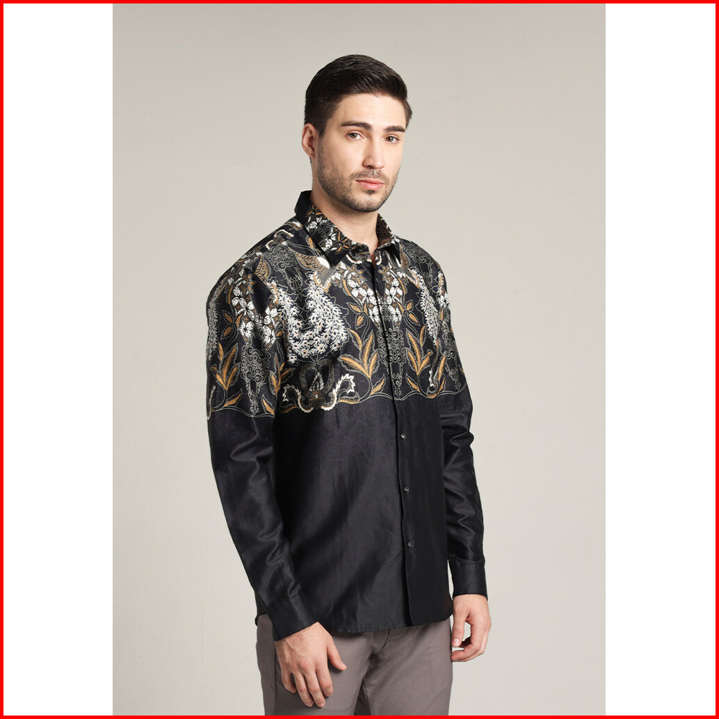 Moc - Kemeja Batik Pria Lengan Panjang Narendra - Black