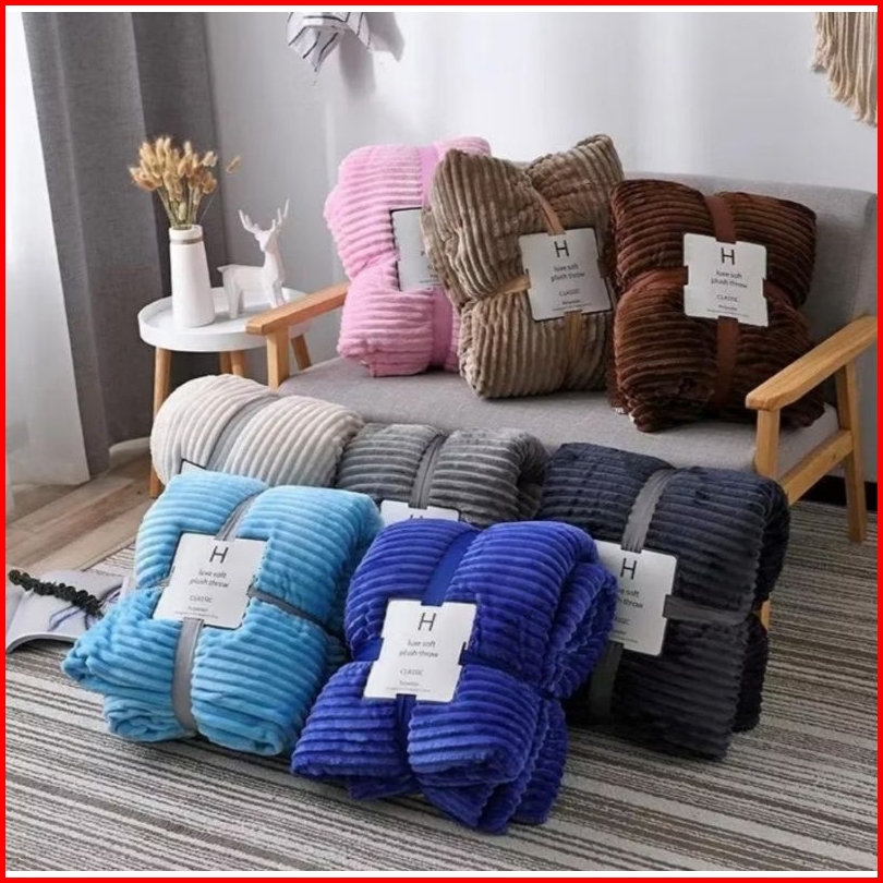 Selimut Bulu Dewasa Tebal Motif Embos Polos Halus Lembut Embos Salur Selimut Murah Berkualitas