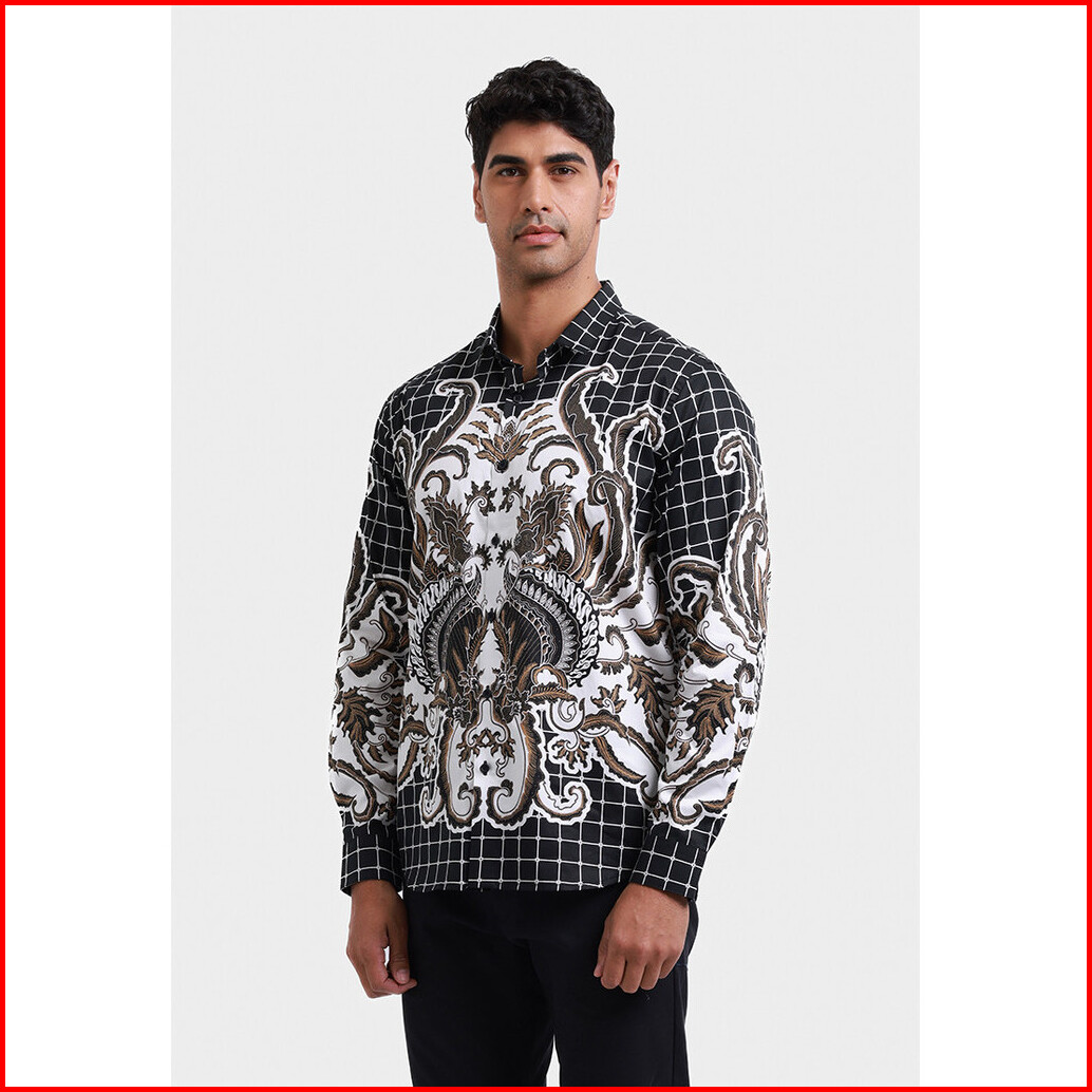 Moc Kemeja Batik Lengan Panjang Pria Saptarengga - Black