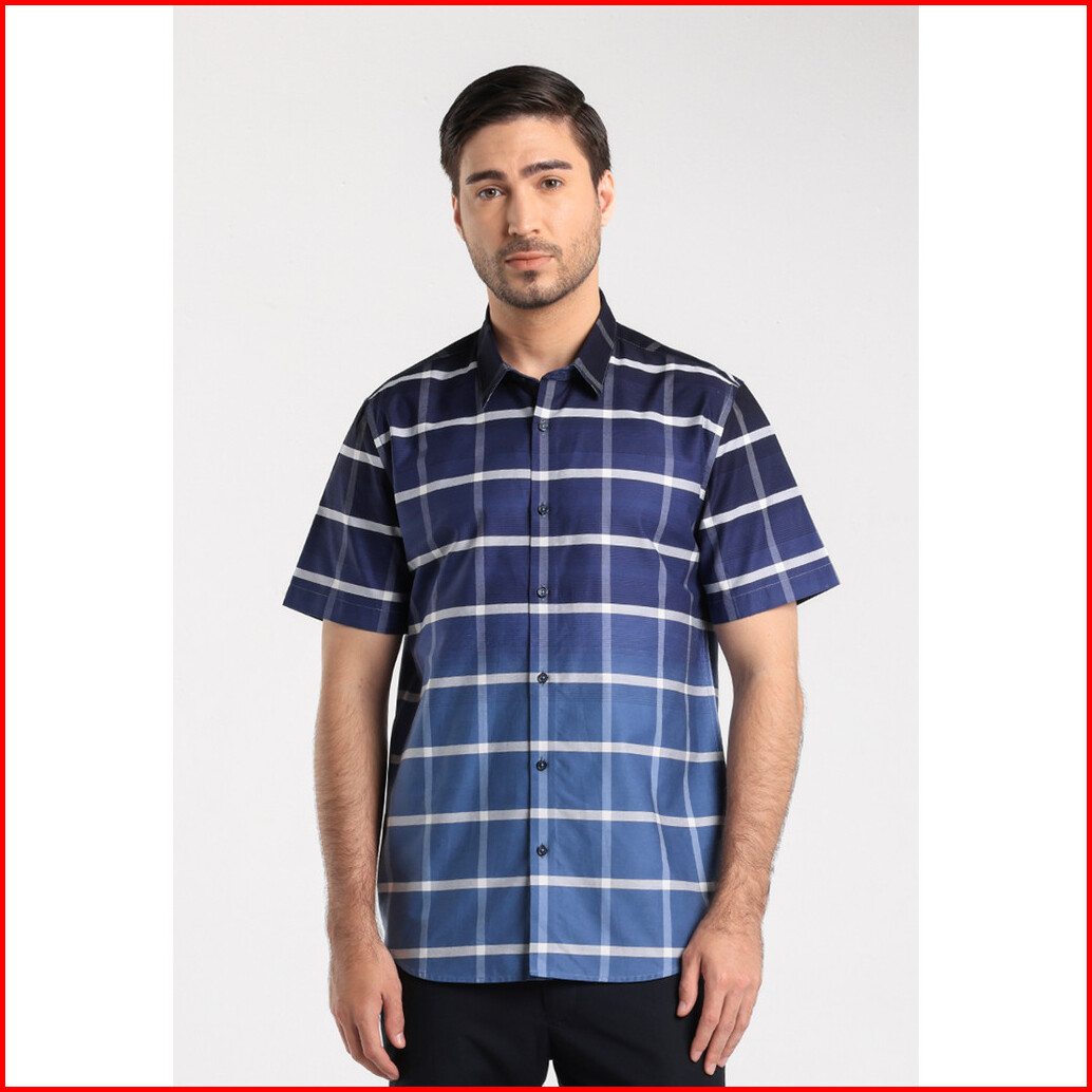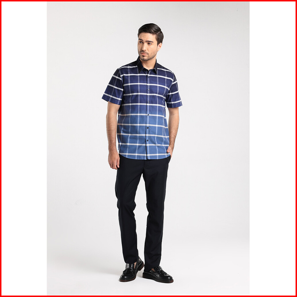Moc - Kemeja Kotak-kotak Pria Lengan Pendek Neil - Navy