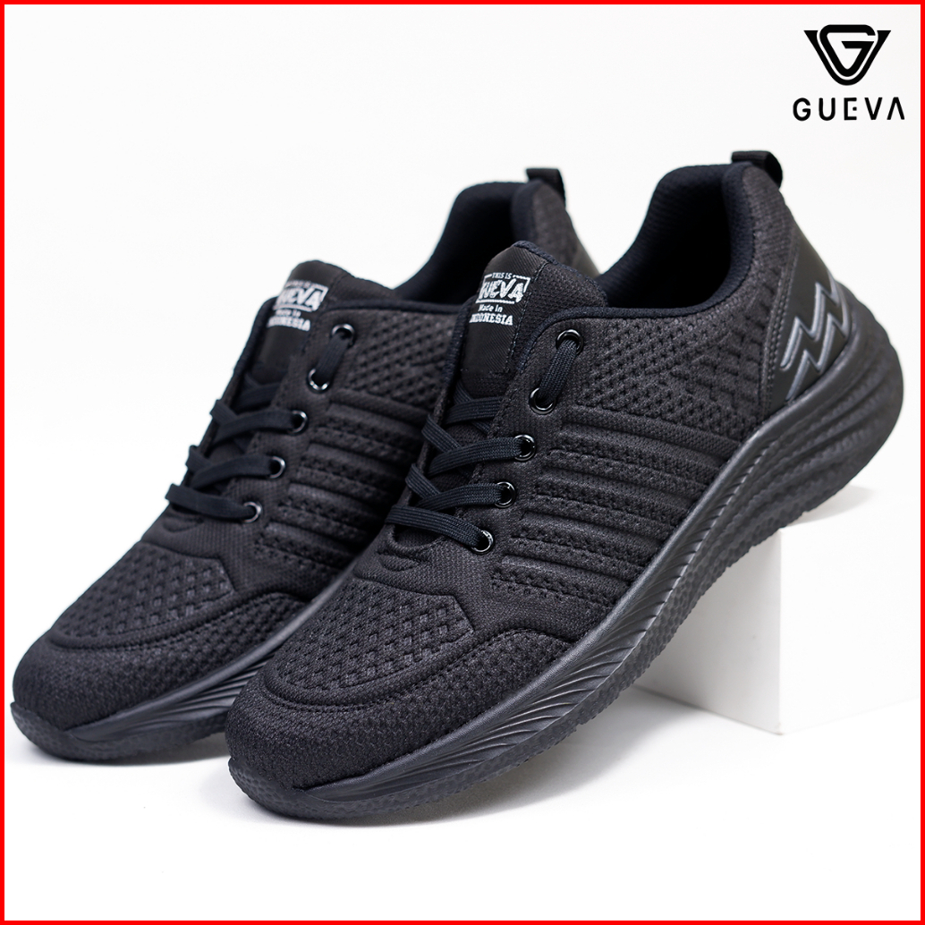 Gueva 062 Sepatu Sekolah Hitam Polos Smp Sma Smk Kuliah Lari Hitam Jogging Running Murah Size 36-43